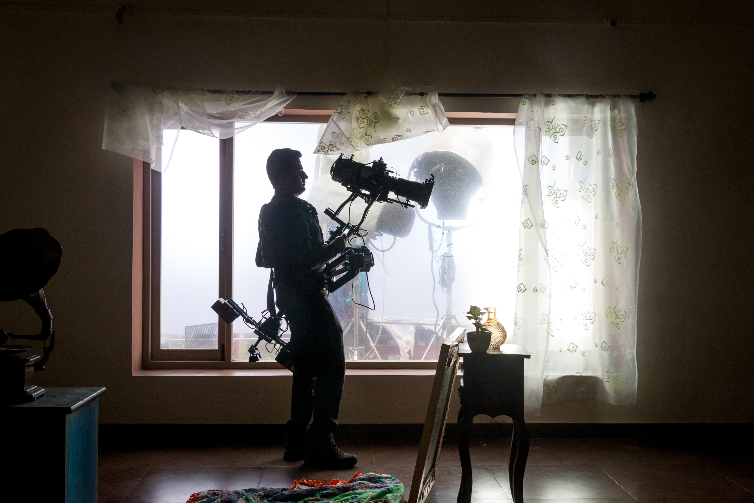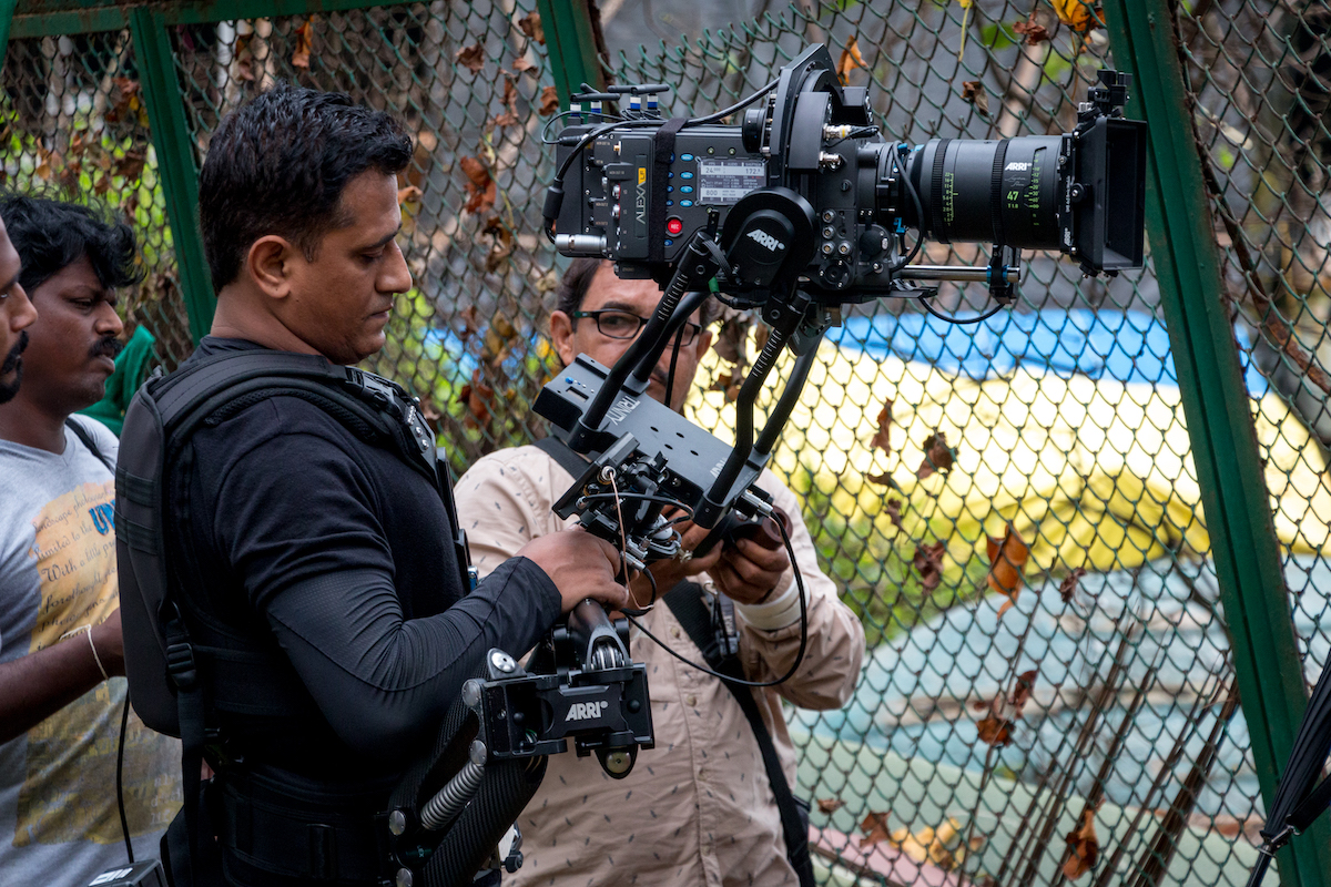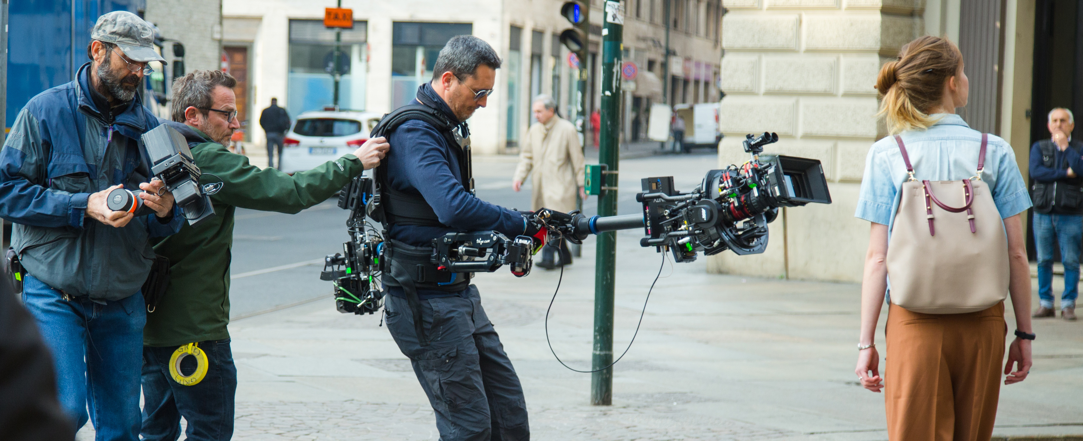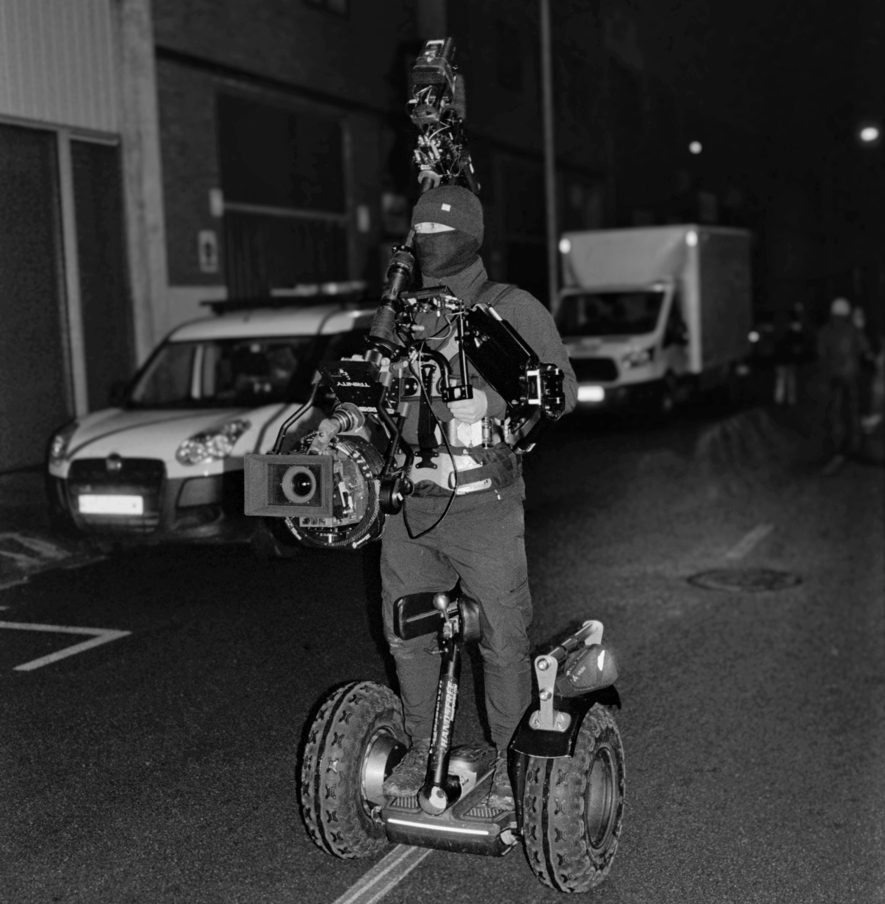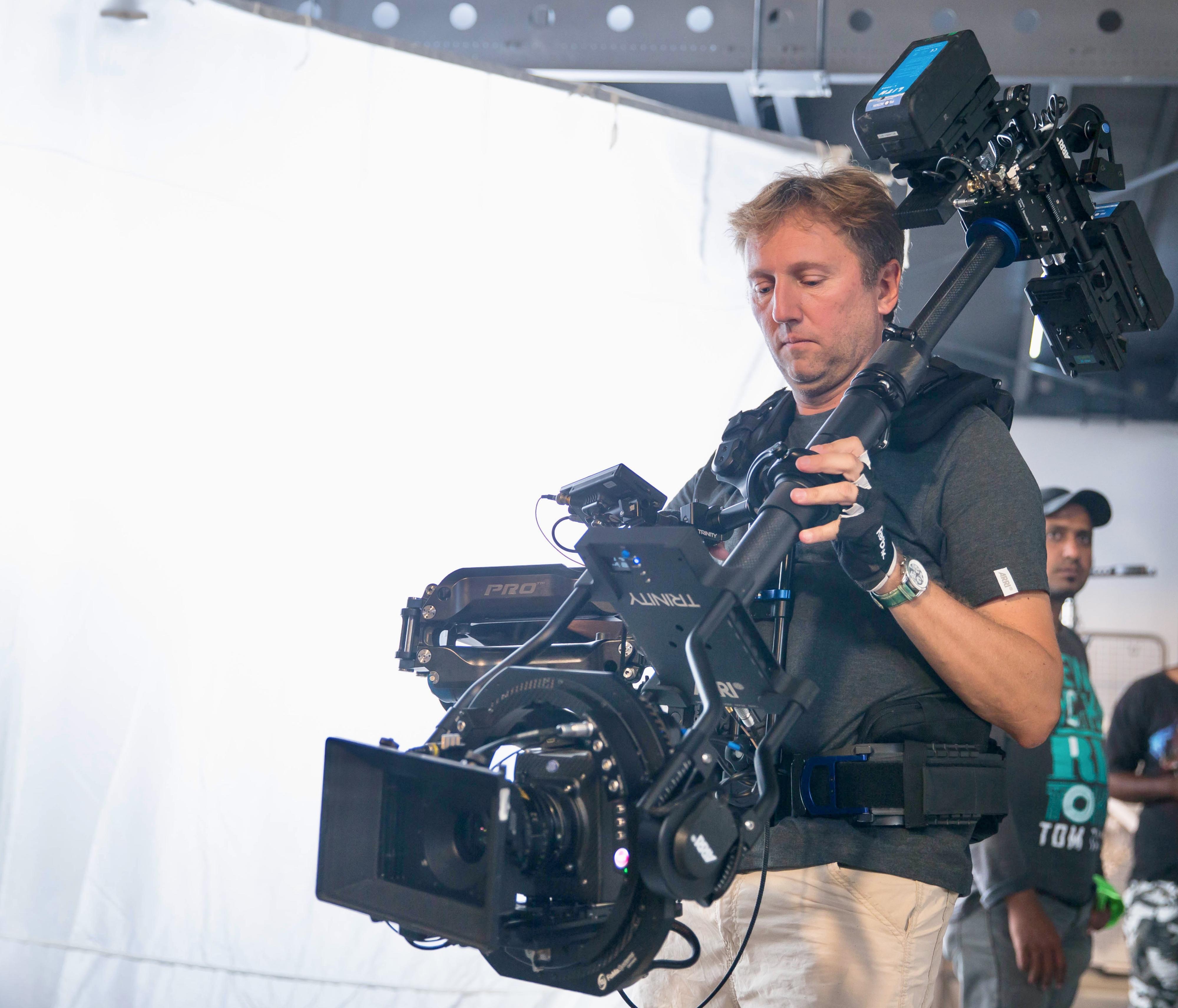 New angles for the operator and new storytelling options for the director and cinematographer are possible with TRINITY. By inverting the post, the camera can be moved from low mode to high mode during a shot; using the joystick-controlled, fully stabilized tilt axis to look up or down during this motion is also possible, so a low angle can smoothly transition into an over-the-shoulder shot. By holding the post at 45 degrees and twisting it left or right, the camera can even look around corners, whether in low or high mode. Additional stabilization in the roll axis permits the use of telephoto lenses. Extraordinary new shots, angles, and movements are achievable when TRINITY is used in its fully stabilized mode. For situations that call for a more traditional operating style, TRINITY can be switched into a locked mode in which the tilt axis is connected directly to the post in the traditional manner.