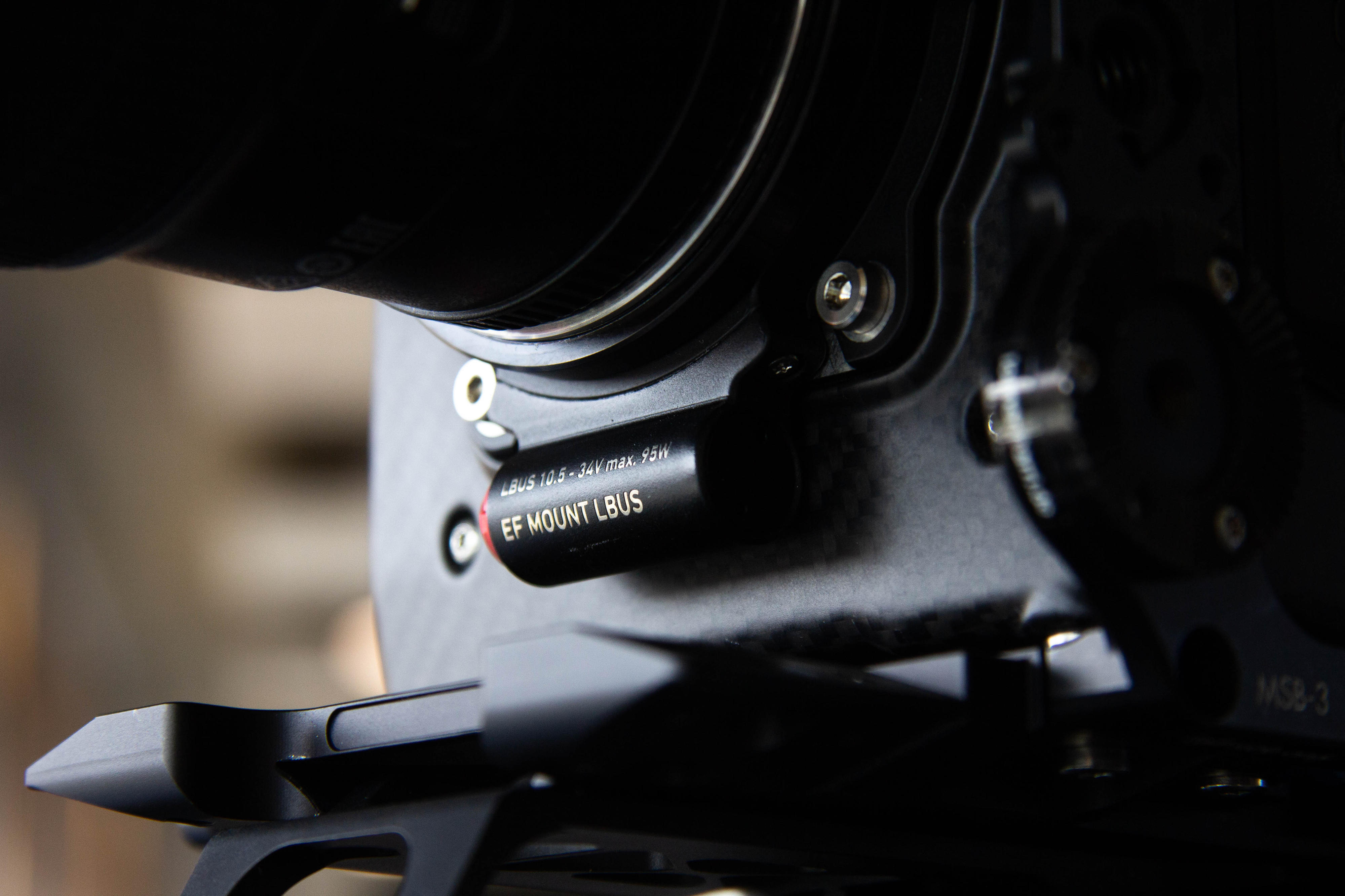 The ARRI EF Mount (LBUS) allows the ALEXA Mini LF or ALEXA Mini to accept lenses with an EF mount and it also provides an LBUS connector.