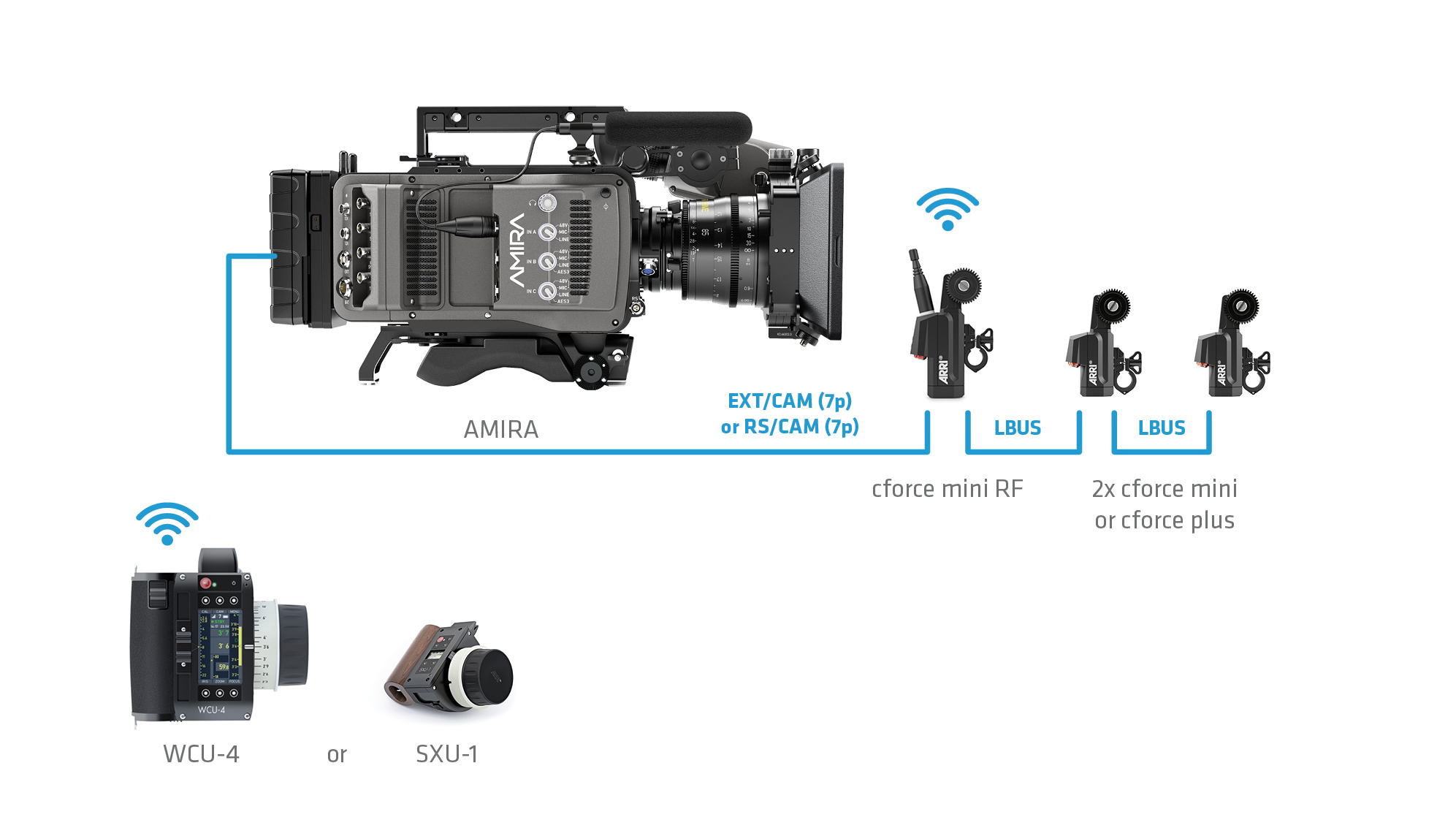 WCU‑4 or SXU-1 + cforce mini RF + cforce mini/plus motors + AMIRA