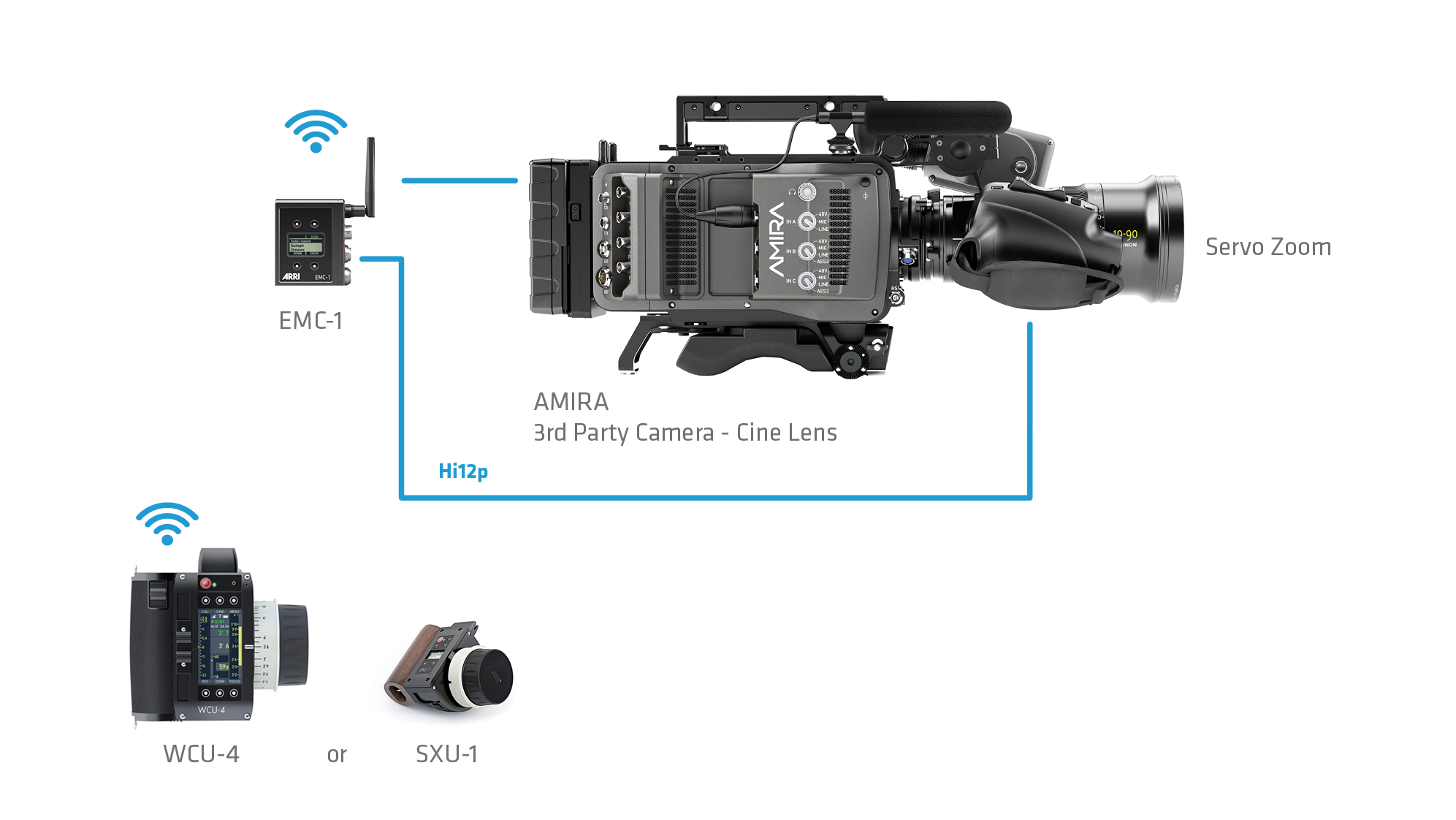WCU‑4 or SXU-1 + EMC-1 + Servo Zoom lens