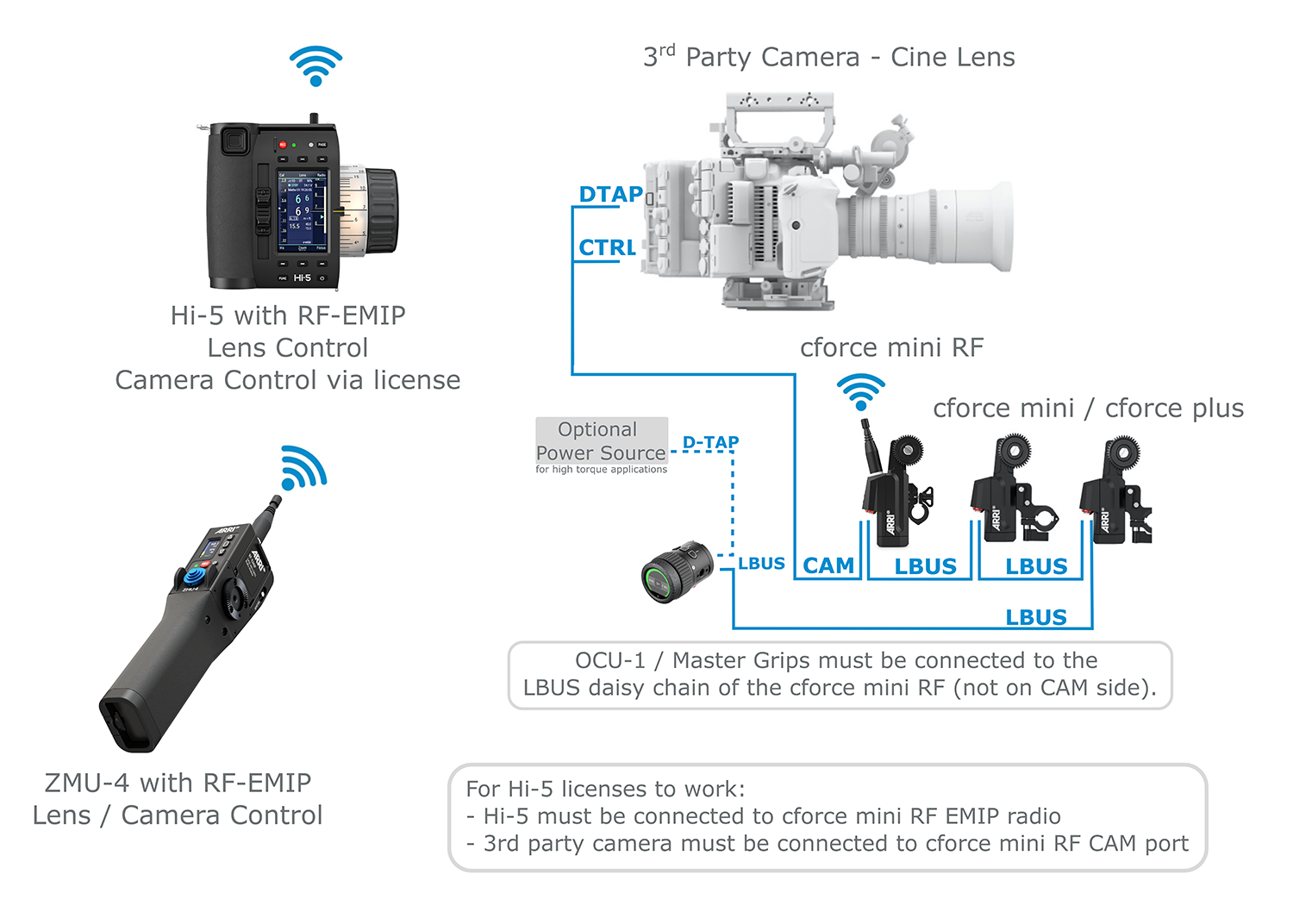 ARRI’s versatile cforce motors control all common cine-style lenses with remarkable speed and torque. Each has its own individual strengths, and as a family they can do anything—even working side-by-side in a daisy-chain, thanks to their twin LBUS connectors.