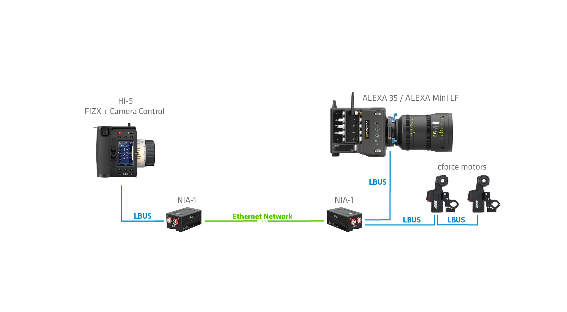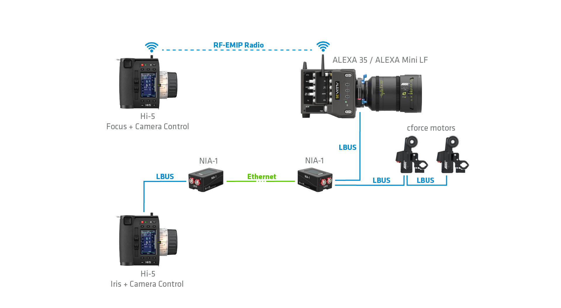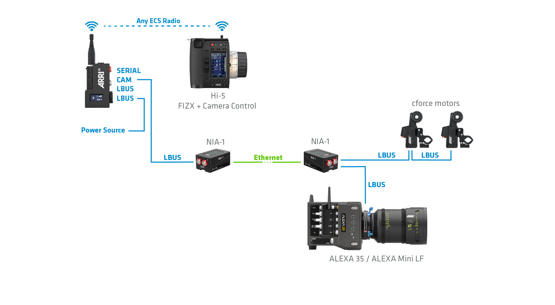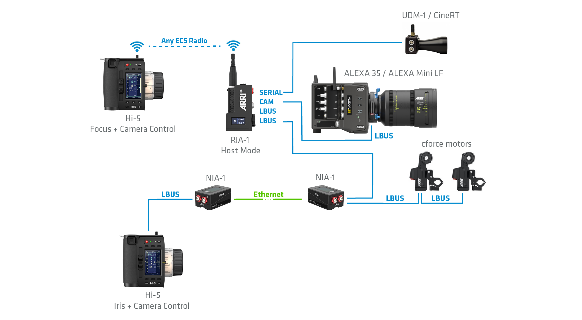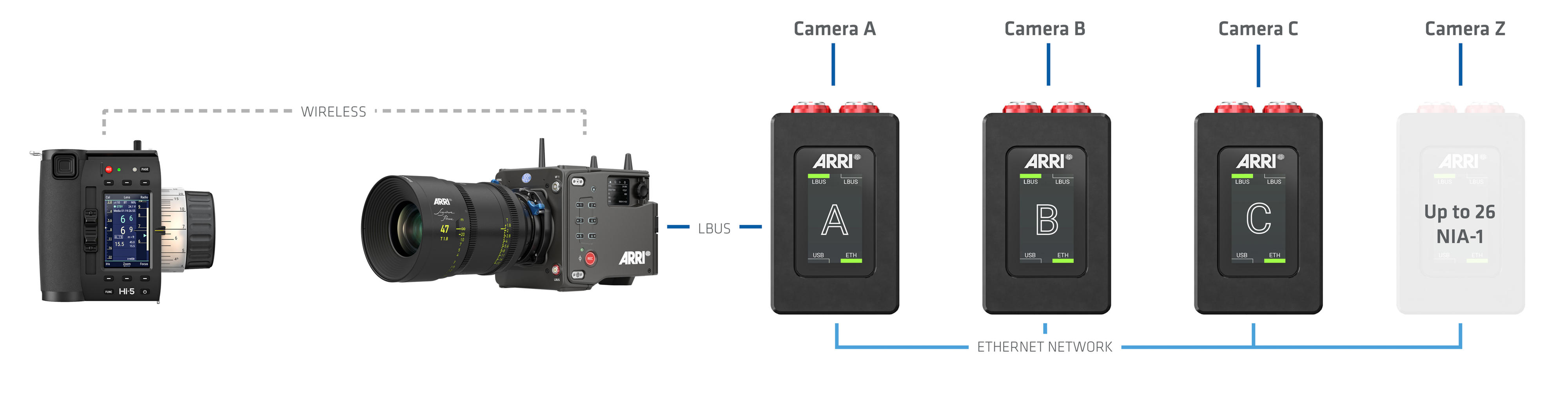 ARRI’s ALEXA 35 Live – Multicam System is pre-rigged for the NIA-1: its secondary Ethernet tunnel allows an ECS setup to run alongside standard broadcast systems. ARRI CSS products like the 360 EVO stabilized remote head are also NIA-1 compatible, so they can be used together with ECS devices to provide live productions with low-latency camera and lens control over vast distances.