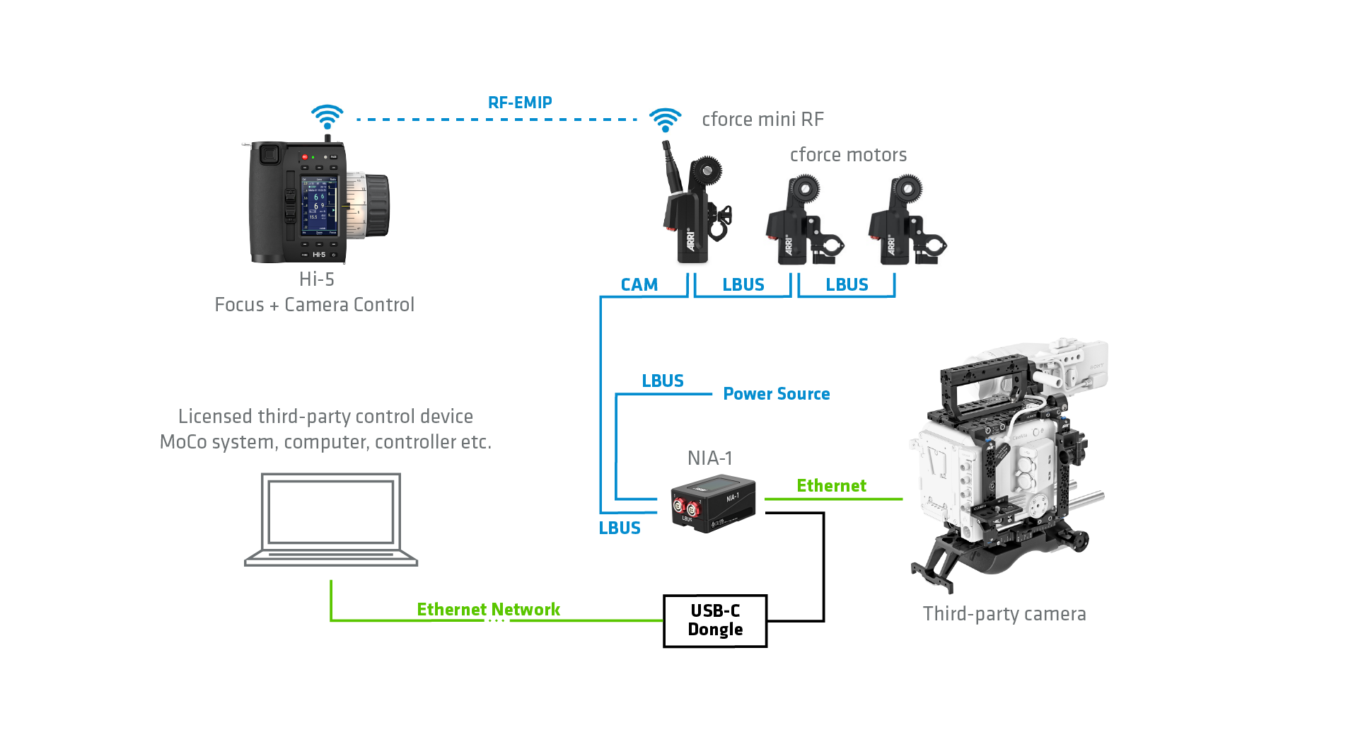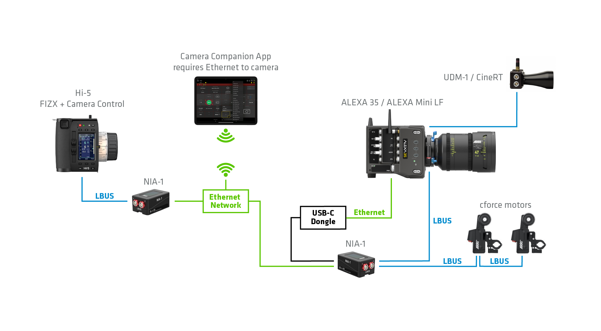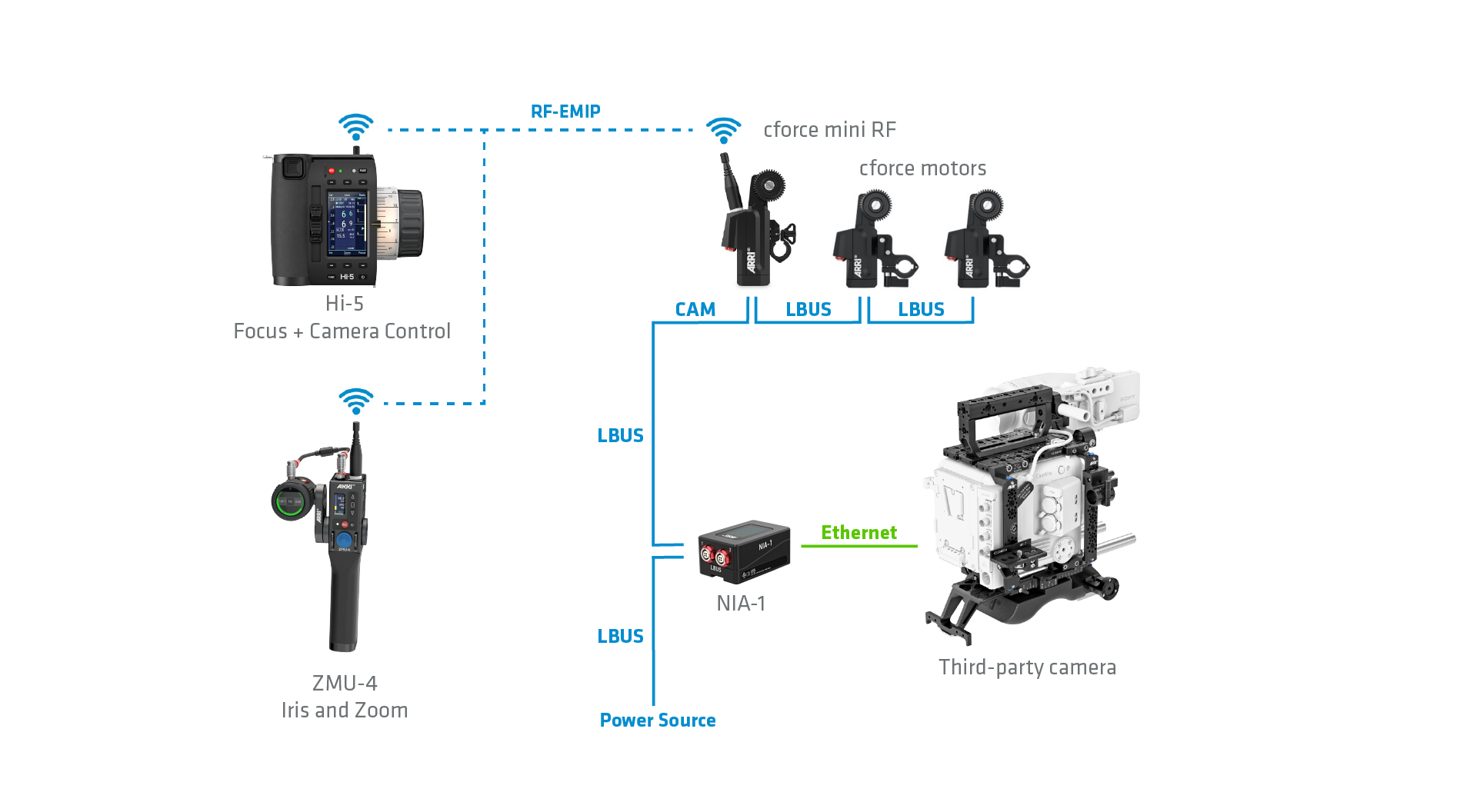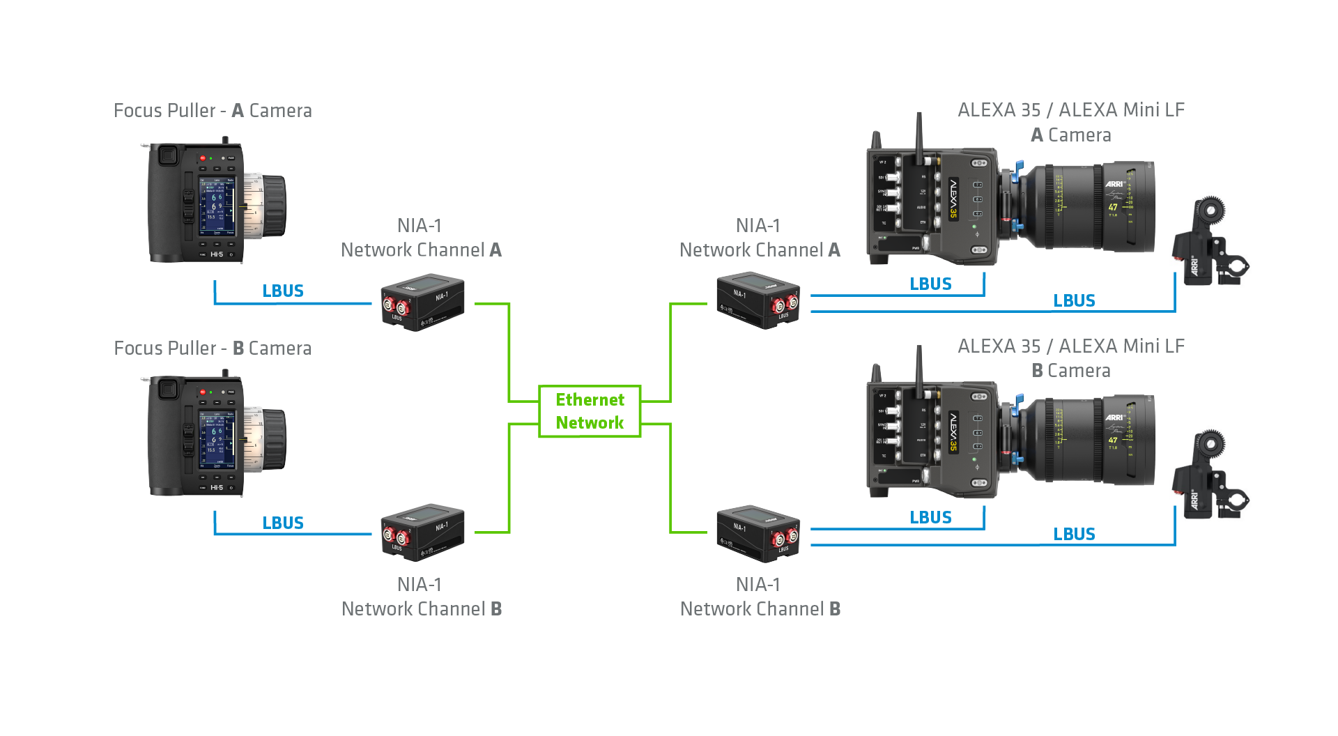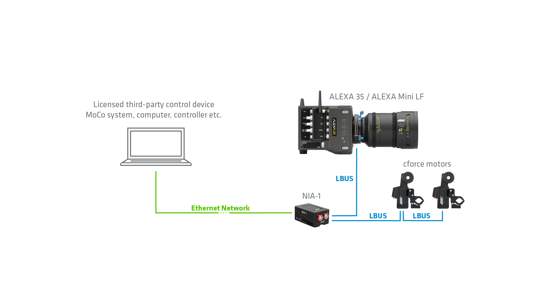 ARRI’s ALEXA 35 Live – Multicam System is pre-rigged for the NIA-1: its secondary Ethernet tunnel allows an ECS setup to run alongside standard broadcast systems. ARRI CSS products like the 360 EVO stabilized remote head are also NIA-1 compatible, so they can be used together with ECS devices to provide live productions with low-latency camera and lens control over vast distances.