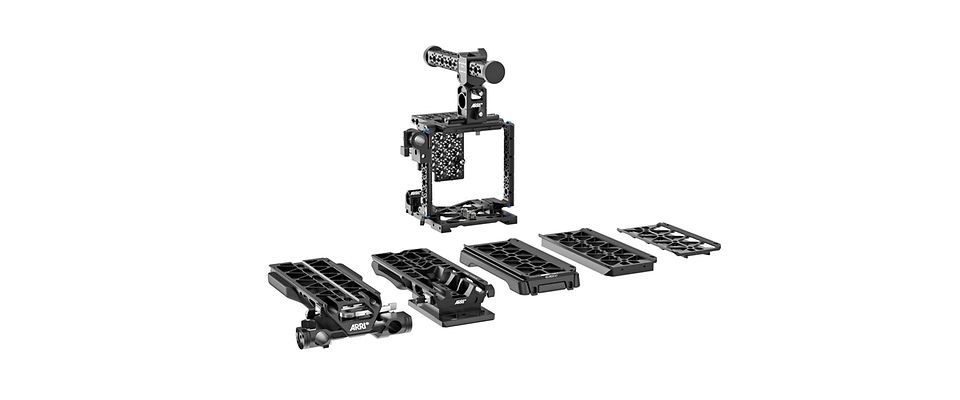 Meet ARRI's Support System for the Sony Venice Extension System Mini camera, featuring a lightweight, compact, and highly versatile cage design with top plate, base plate, side brackets, back plate, and dedicated top handle. The system also includes newly designed ergonomic handgrips, specially developed for the Sony Venice Extension System Mini.