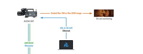 The look information is always stored as metadata with the recorded ARRIRAW or ProRes images, and can therefore be used to automatically apply the look when creating dailies or editing proxies. This is supported by BlackMagic Design Davinci Resolve, colorfront On-Set Dailies, Pomfort Silverstack and Filmlight Daylight, amongst others.
