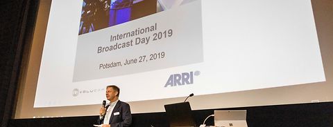 Caption 1: Dr. Joerg Pohlman, member of the Executive Board at ARRI, welcomes the audience to the International Broadcast Day 2019; an event organized by ARRI and Volucap