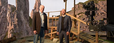 Attached is a photo of photo of Stephan Schenk (l., ARRI) and Jens Friedrichs (PLAZAMEDIA) in the Mixed Reality Studio in Ismaning (Copyright:ARRI/PLAZAMEDIA) for free use in the context of editorial reporting.