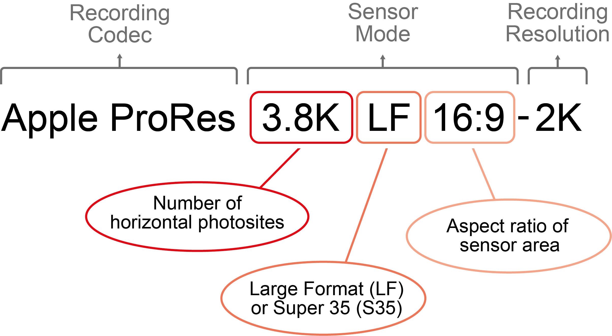 • These formats are slightly less wide than the full sensor width because that results in a better down-sampling factor for down-sampling to UHD or HD, which results in better image quality in contrast to using the full sensor width.
