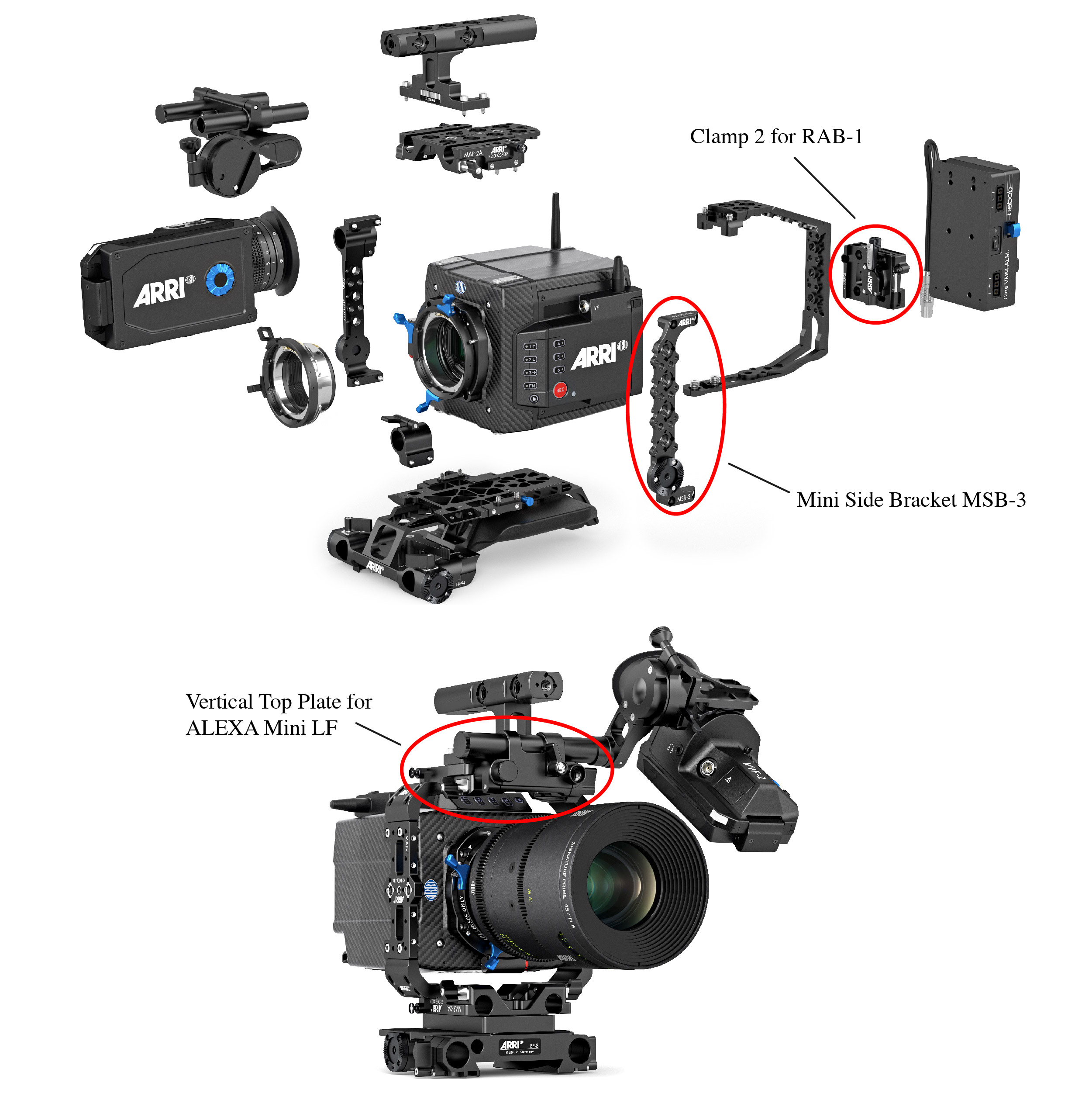 • Please take a look at our configuration overviews webpage to download the ‘ALEXA Mini LF & Electronic Accessories’ and ‘ALEXA Mini LF & Mechanical Accessories’ documents. Configuration overviews for nearly all ARRI products can be found on that webpage.
