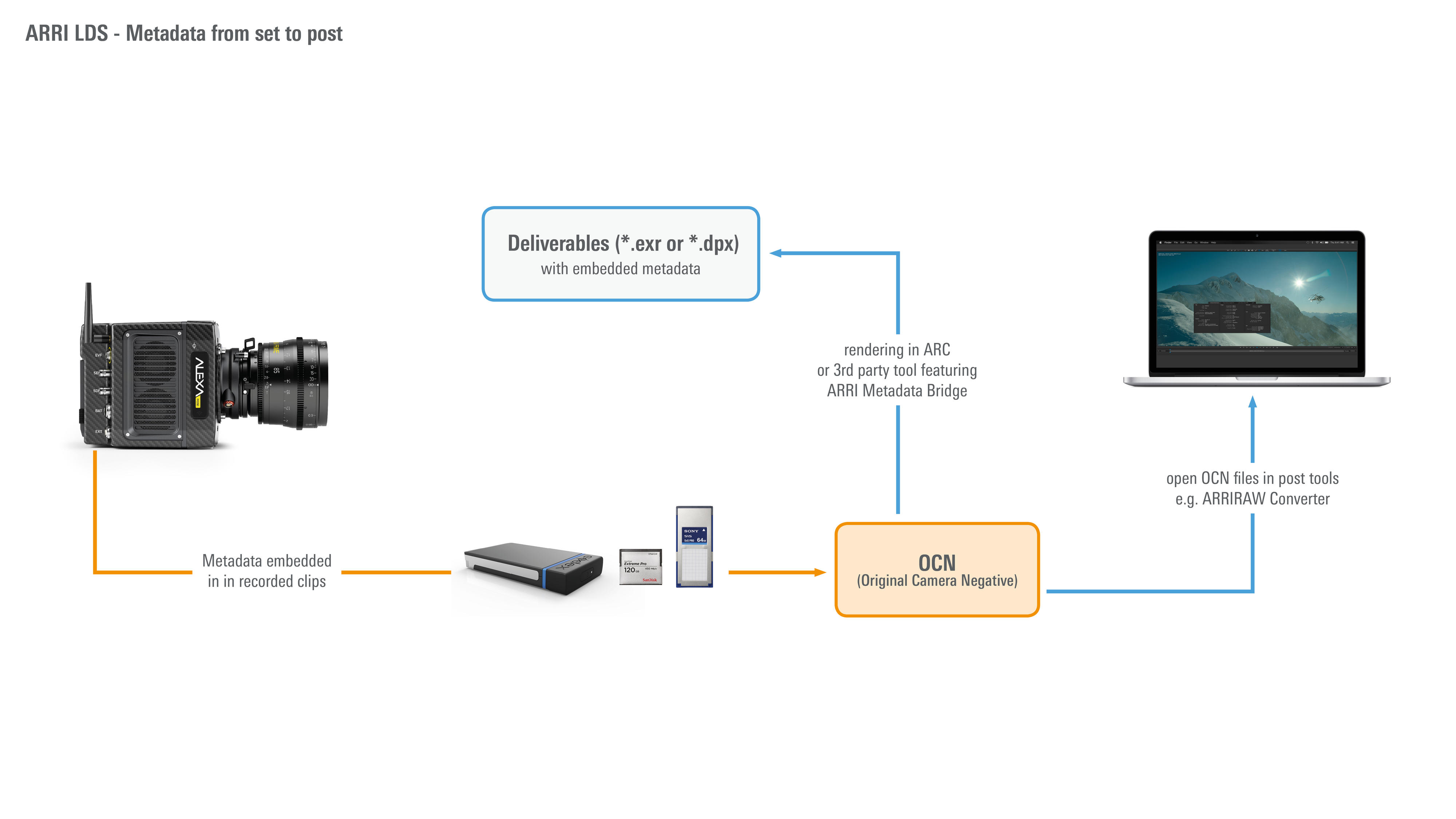 - Lens data for postproduction eliminate guesswork in VFX. Through the ARRI Metadata Bridge third-party tools can transport metadata from ARRIRAW files to OpenEXR and DPX files – a time and money saver for post-production.