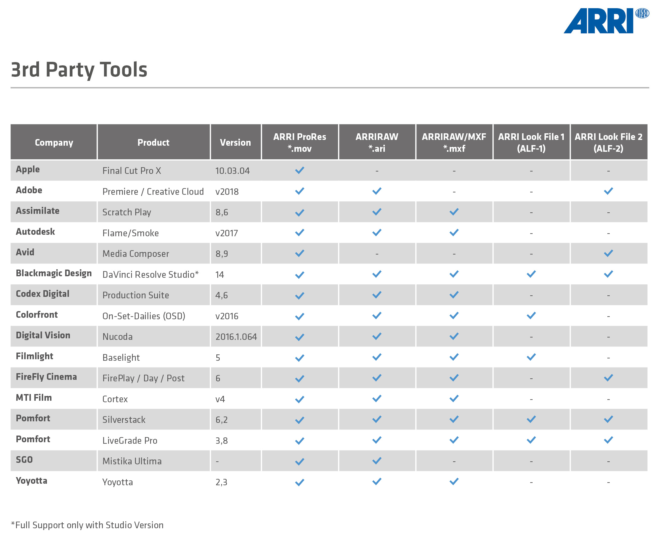 ALF2 look files are designed to work with ALEXA Mini, ALEXA SXT, ALEXA 65, ALEXA LF, ALEXA Mini LF, as well as AMIRA (all using our ALEV3 sensor). They combine a creative grade (CDL or custom LUT) with a color-space transform.