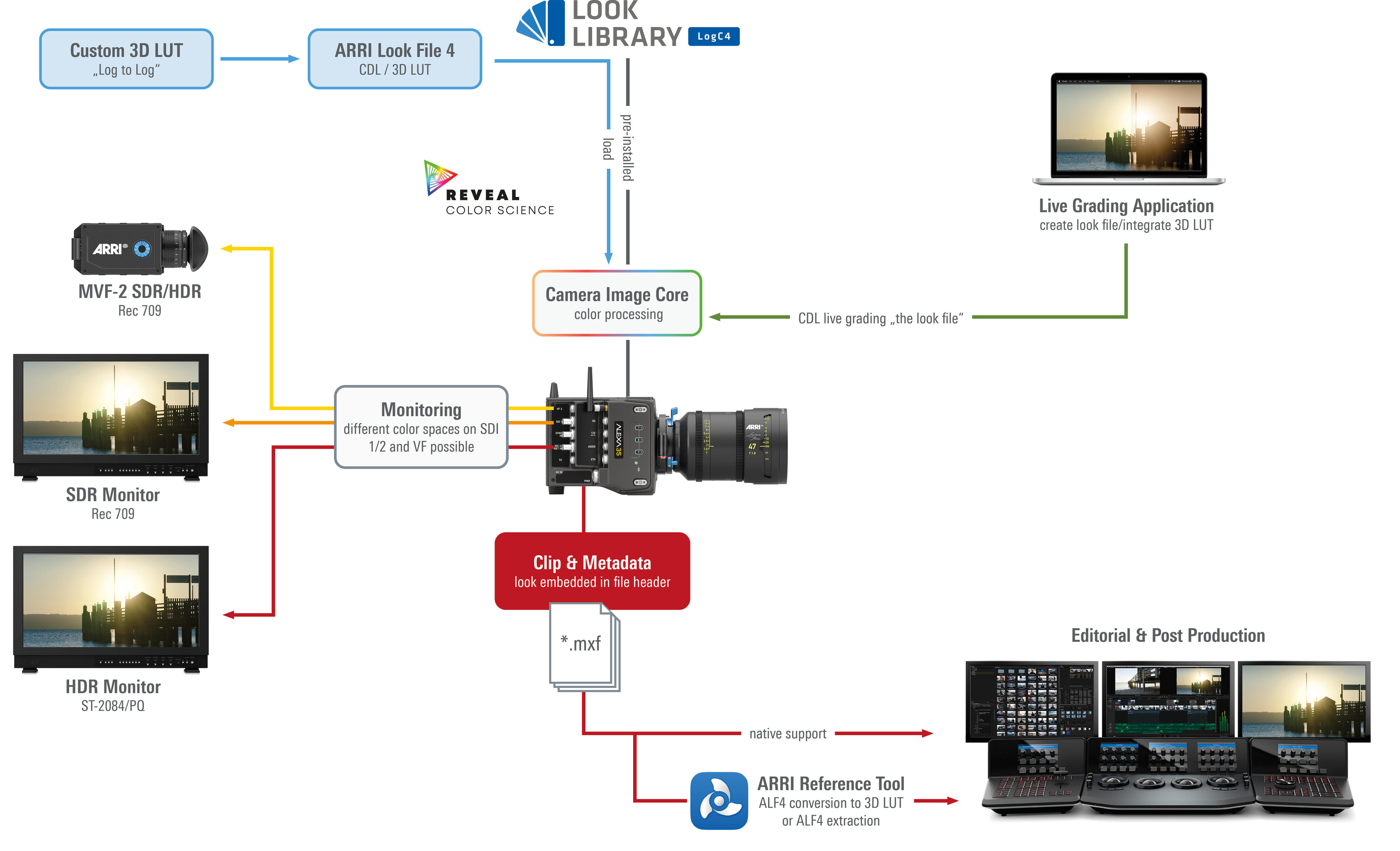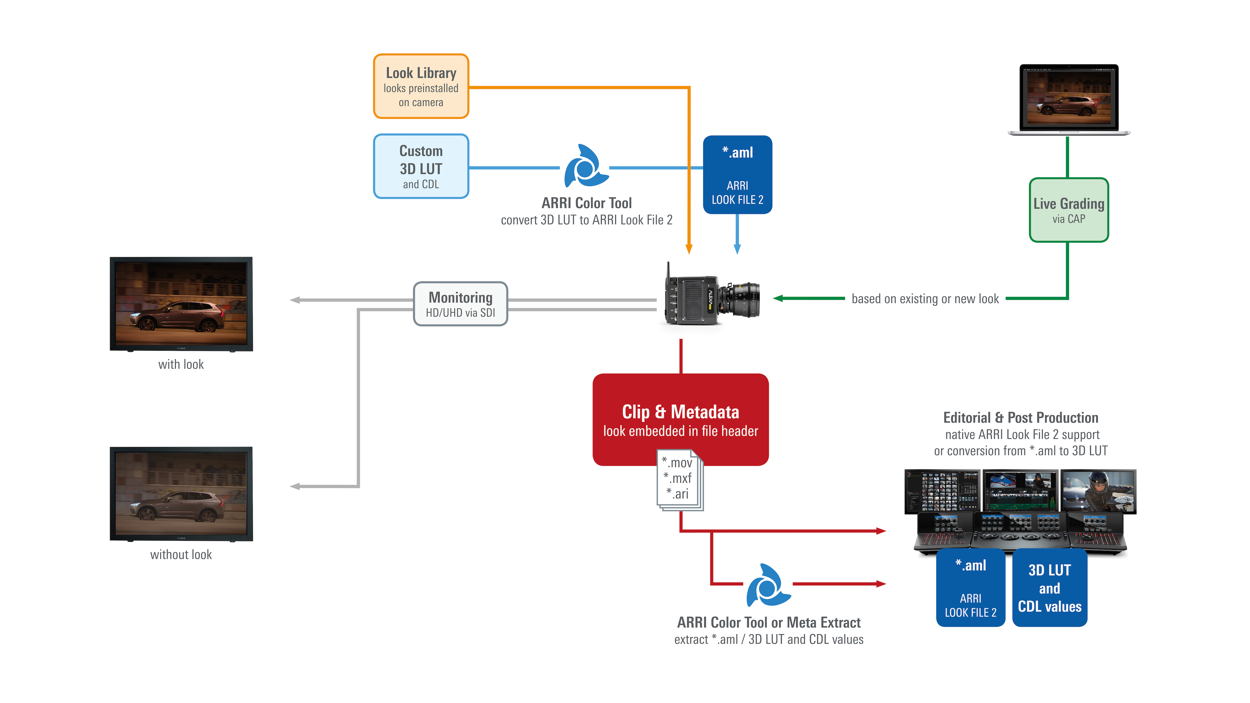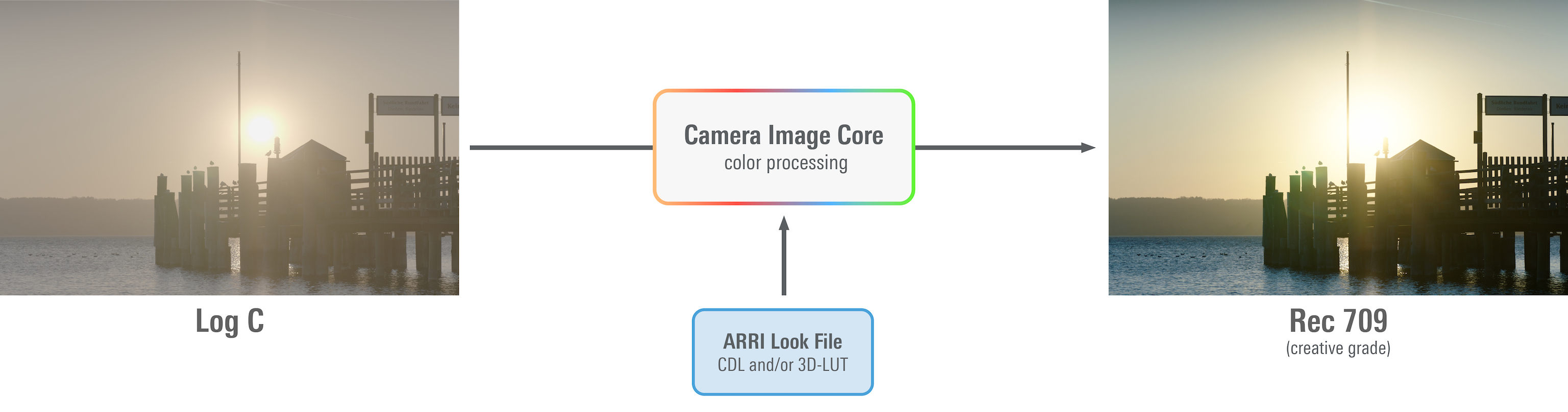 Nowadays the daring question “What will my image look like, when all the processing is done?” can be answered in no time. This can either be the default conversion from ARRI’s logarithmic color space to the viewing color space of a display device or in a creative way via the ARRI Look File.