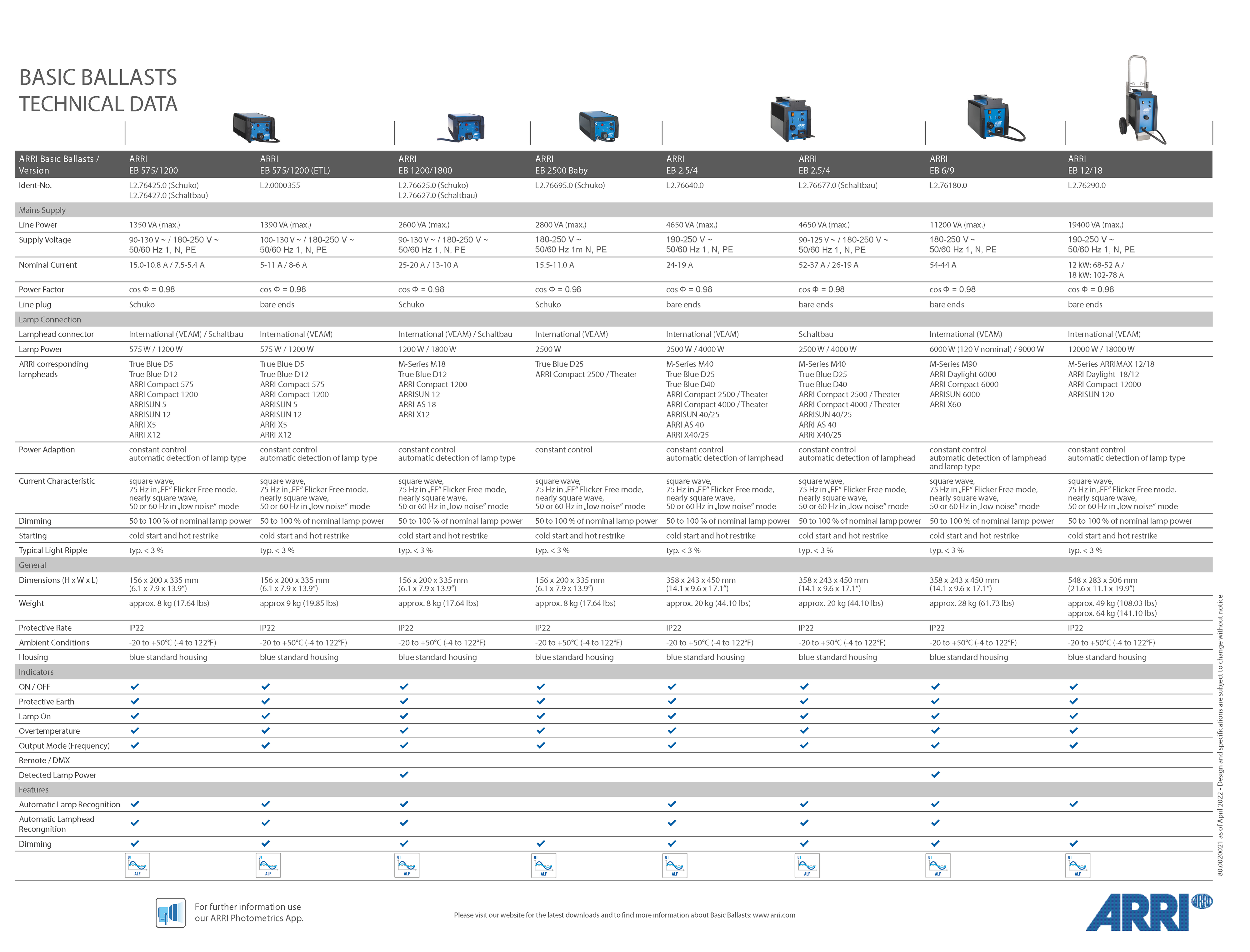 For over 25 years, discharge lighting ballasts have been an integral part of the ARRI Lighting family. During that course of time, the range has developed to comprise the reliable, robust and efficient components recognised today as the industry standard for film, theatre and events. The range of ARRI Basic ballasts features state-of-the-art electronics and offers easy maintenance, automatic fault detection and extensive status indicators, along with impeccable reliability and safety. A wide range of cables and accessories complete the ARRI Lighting product line.