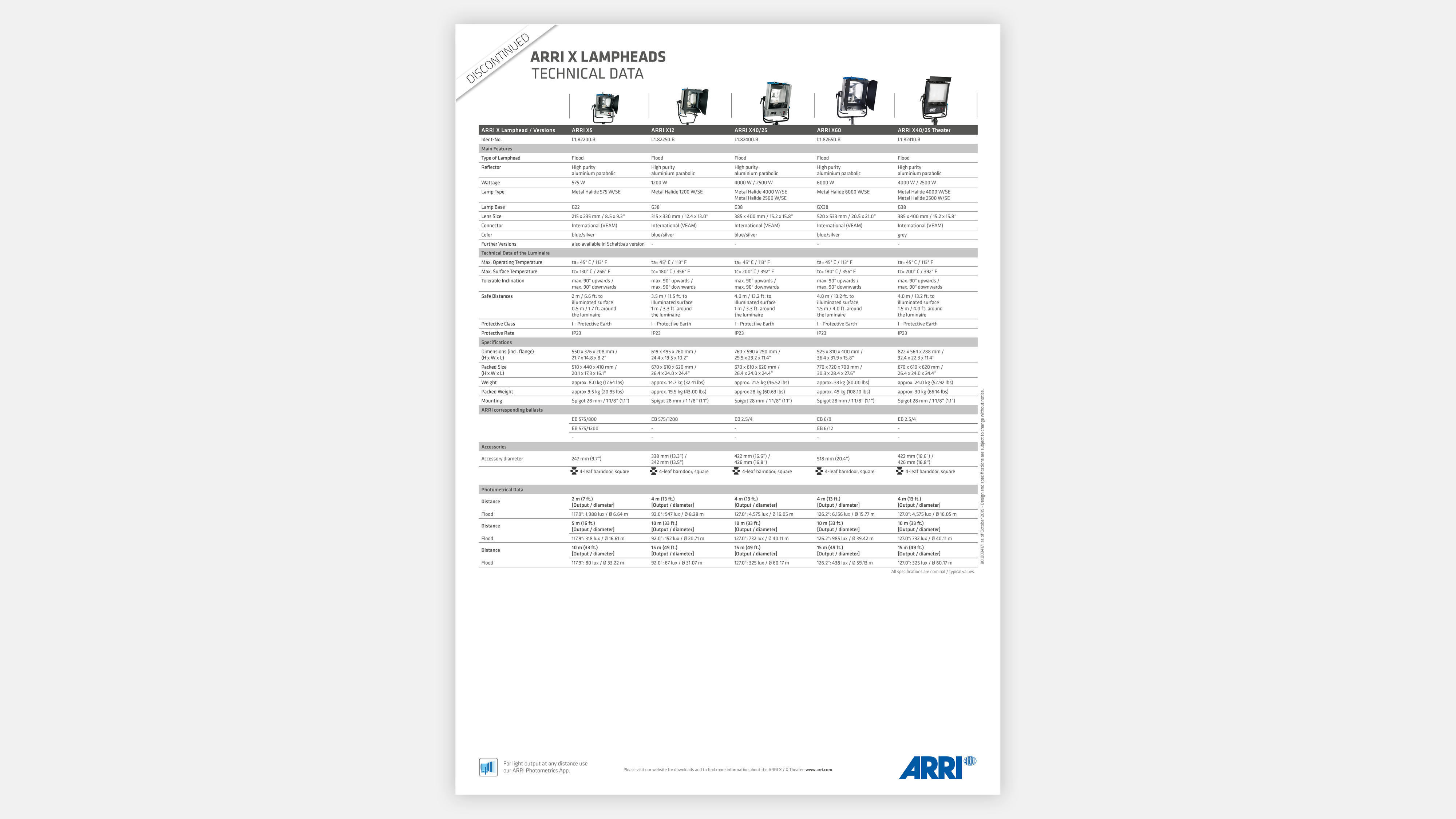 In 2017 ARRI the ARRI X and ARRI X Theater lampheads have been discontinued.