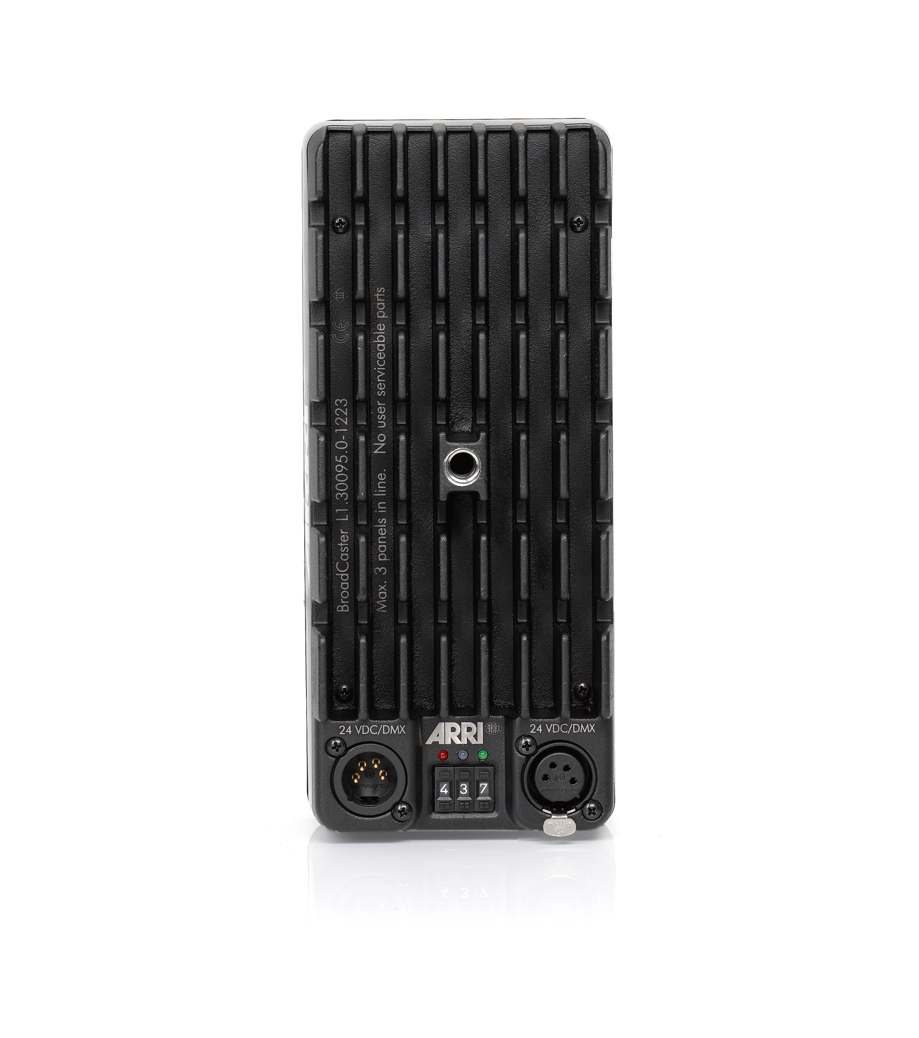 The ARRI BroadCaster 2 Plus incorporates a built-in DMX controller for remote control and offers versatility when lighting tight spots in small and medium-sized studios. Intensity, color temperature and ± green can be independently controlled.