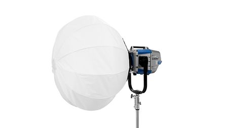 The Dome Optics for Orbiter by ARRI, DoPchoice, and Chimera are fabric spheres available in different sizes. They easily attach to the front of the Orbiter and form a balloon or lantern shape. The Quick Lighting Mount (QLM) adapter is either pre-installed in some of the domes or a speed ring is specially made to fit the QLM, allowing the lightweight domes to be connected to Orbiter with one simple action. The domes emit omni-directional light, great for illuminating a large area with a beautiful, soft quality of light.