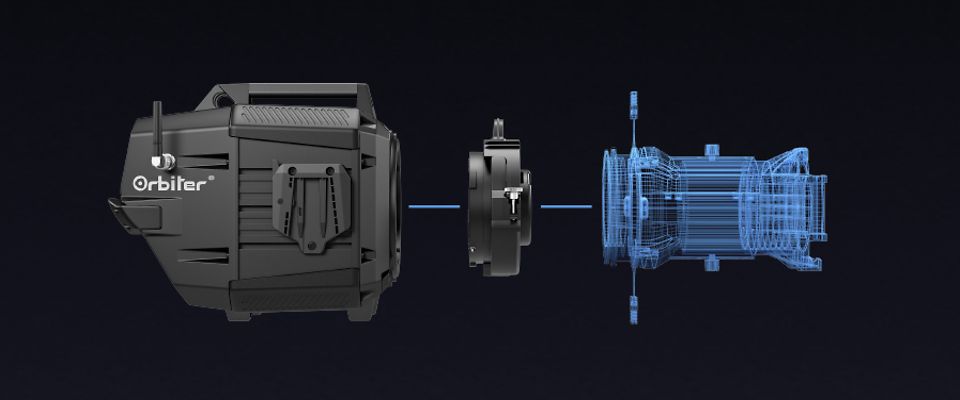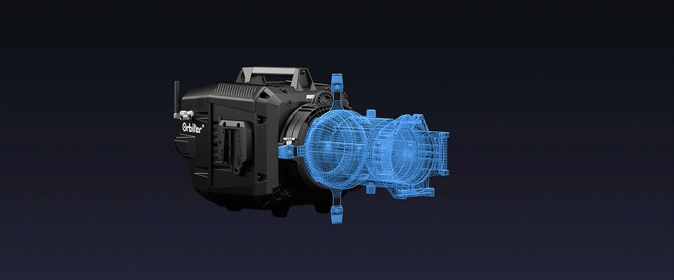 This new accessory gives a second life to already owned equipment. The Orbiter’s built-in reflector and collimator boost older equipment’s efficiency. Furthermore, Orbiter’s high power and output, along with its outstanding optical performance, homogeneous field, and clean projection raises the value of third-party equipment. A manageable investment that will have a big impact on additional versatility.
