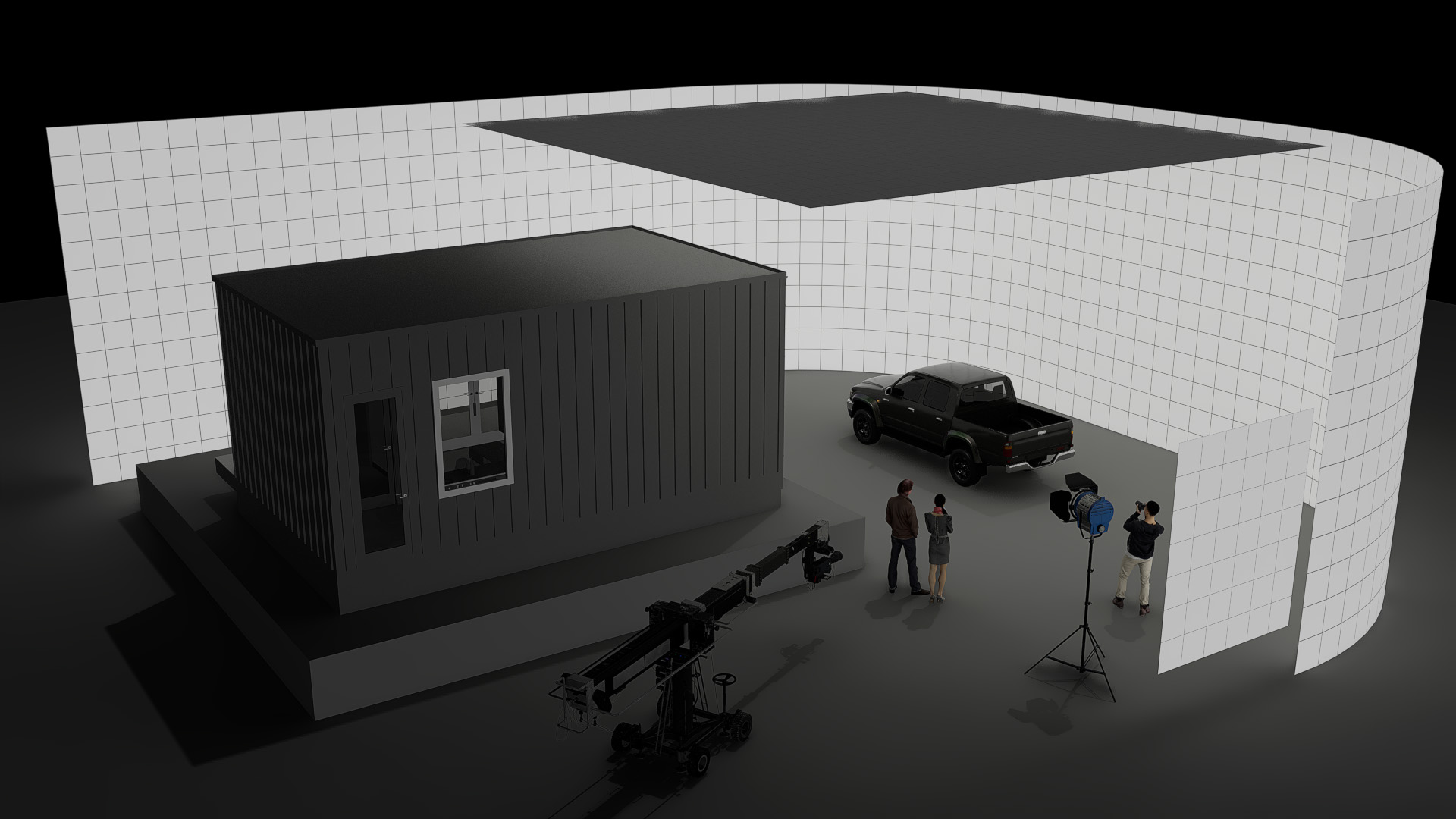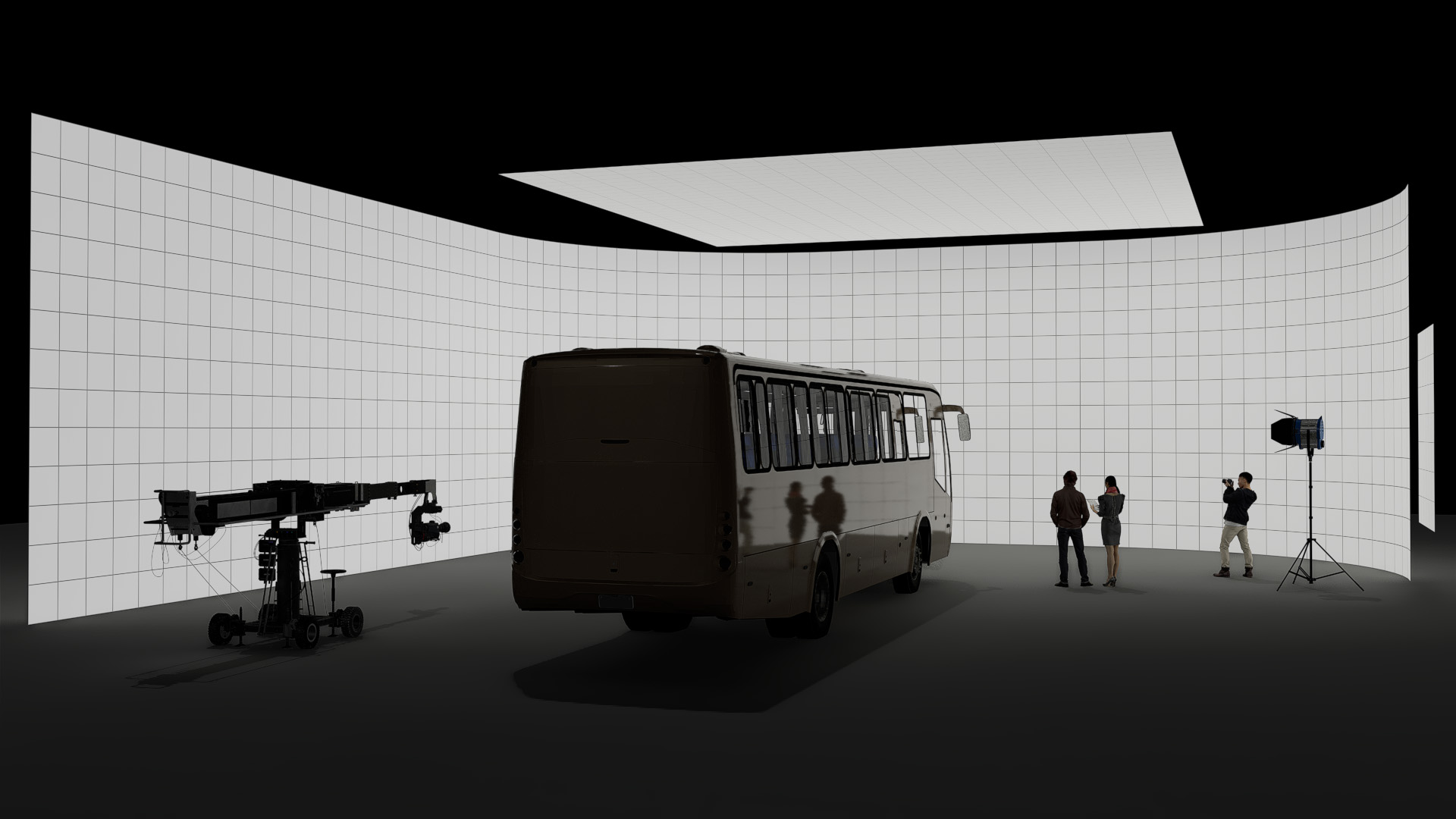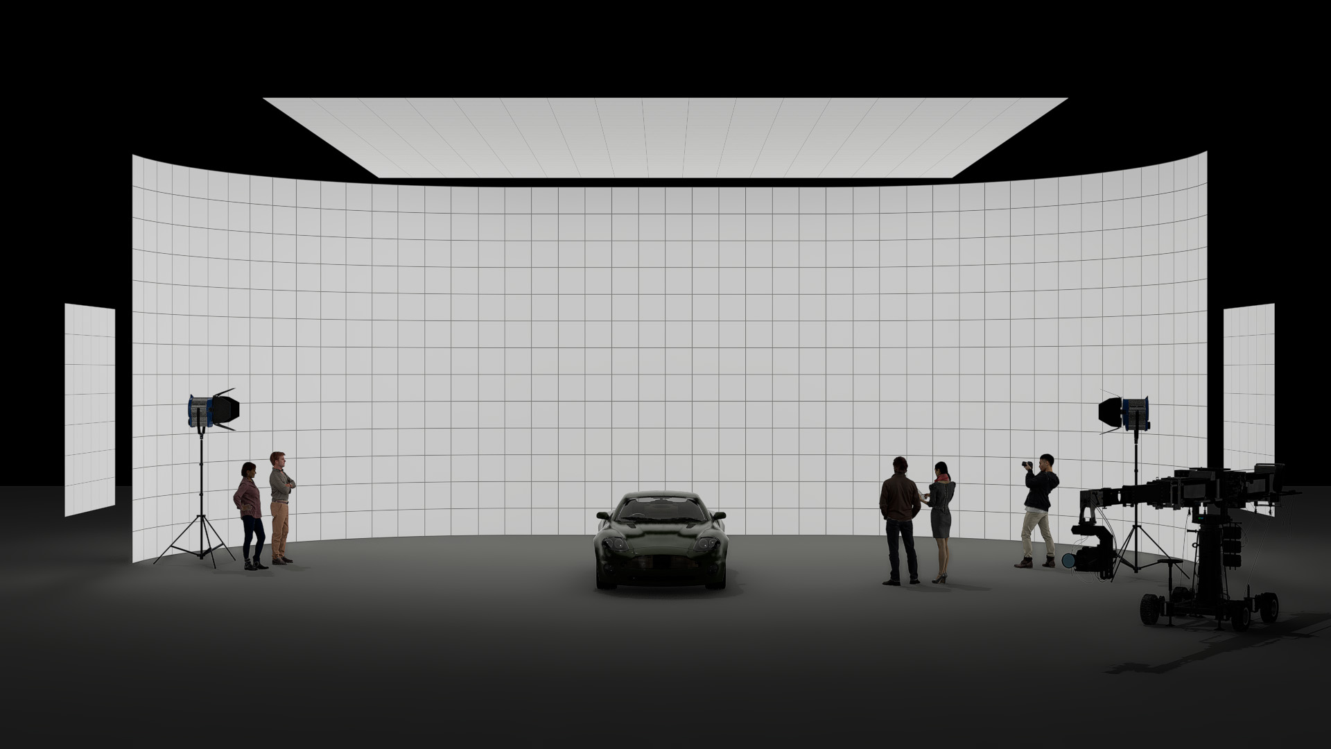 A cost-effective solution ideal for single or multi-camera setups. Features a 24 m wide x 6.5 m high (78.7 ft x 21.3 ft) main wall and 10 m x 5 m (32.8 ft x 16.4 ft) dynamic motorized ceiling. Completing the package are two moveable and tiltable 'wild wall' side sections, each 2 m wide x 3 m high (6.6 ft x 9.8 ft).