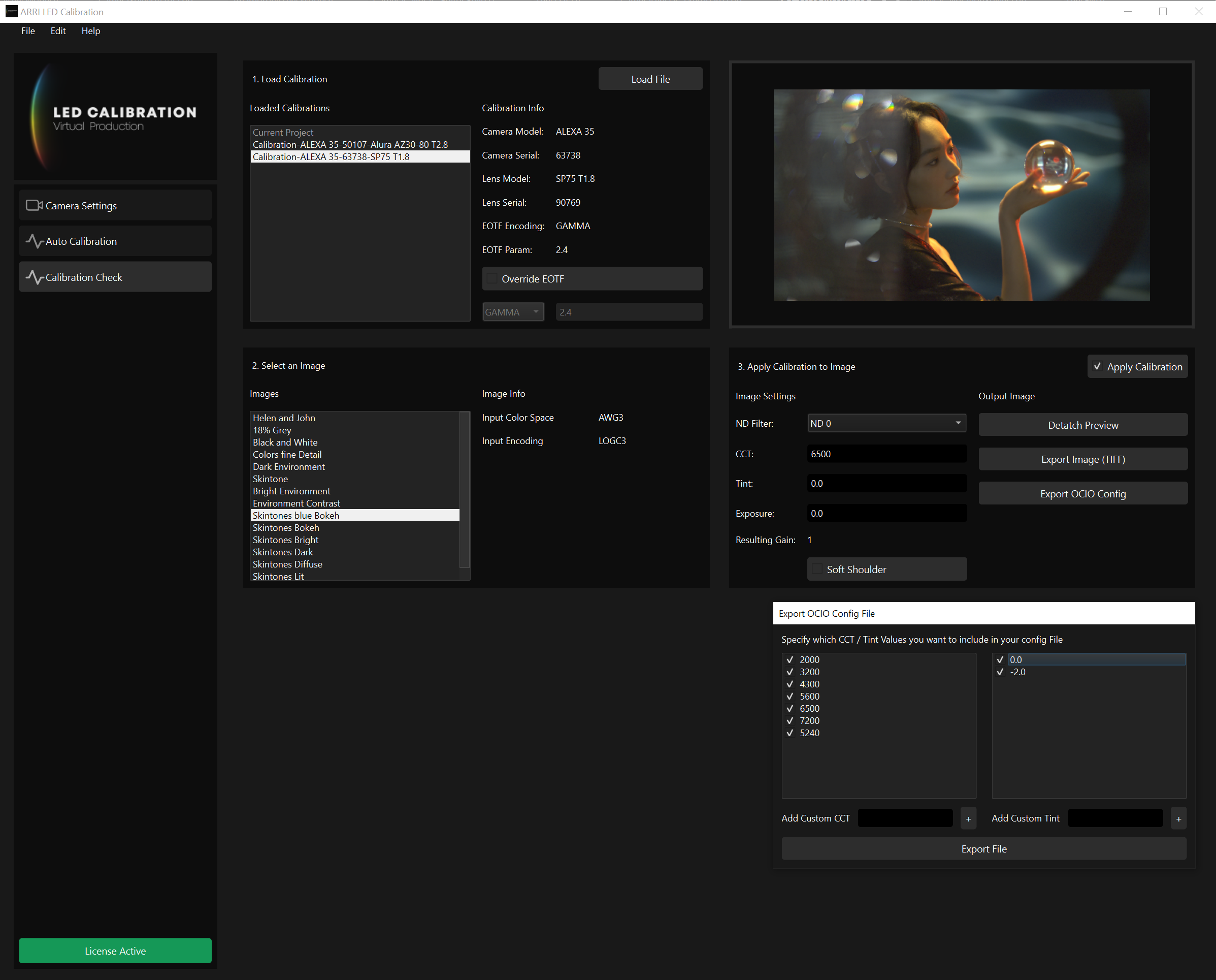 Version 1.1 of the LED Calibration software features OCIO export configuration. Select from pre-set or custom CCT and Tint values to be included in a config file, which can then be uploaded into your playback system.