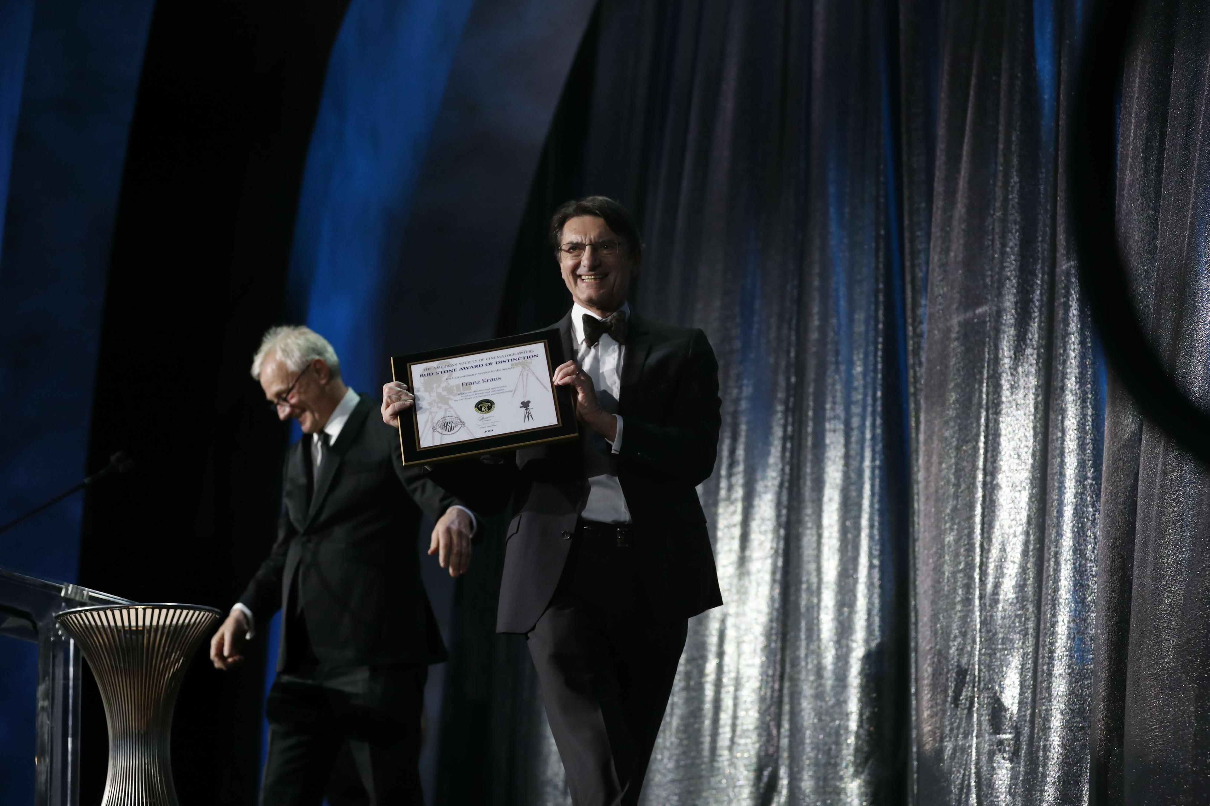 The ASC Bud Stone Award of Distinction was given to Professor Franz Kraus, long-time Executive Board Member and now member of the Supervisory Board of ARRI. This award is presented to an ASC Associate Member who has demonstrated extraordinary service to the society and has made a significant contribution to the motion-picture industry. ASC President Kees van Oostrum presented the award saying, “His tenacity and commitment eventually allowed him to spearhead the creation of a tool with the ARRI ALEXA that deeply touches and inspires everyone in this room tonight.”