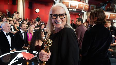 Jane Campion poses with the Oscar® for Directing “The Power of the Dog.”