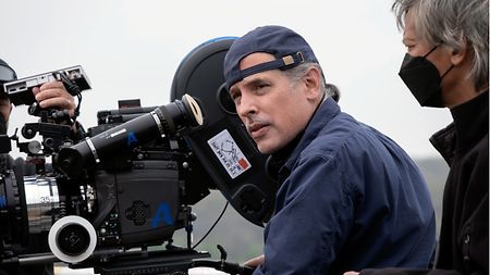 Director Matteo Garrone looking through the ALEXA Mini LF with DP Paolo Carnera directly behind