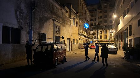 What interested me about “Hounds” was the balance between a very documentary framing and a very dark image, entirely captured at night. I loved playing with the codes of film noir in this film, especially the strong contrasts. Indeed, it is very painterly, like starting from a blank canvas, which leaves a lot of room for lighting. Starting with black, you can decide which details you are going to reveal and what remains hidden. Often, all I could see was the reflection of an eye, a few shimmers on the skin. I didn’t light anything else. “Hounds” is a plunge into the abyss. We as viewers are lost, exactly like the protagonists. They don’t know what to do to get out of their situation. And looking at the imagery, black almost becomes a character within the film. In the streets, I made use of the surrounding light. Casablanca is a city with a lot of sodium lighting; I often had to turn off streetlamps to give the light direction and prevent images from being uniformly orange. I liked this saturated sodium hue and often tried to accentuate it to give the impression of a city on fire. I also used battery-operated Chinese baubles, with a slightly cyan white for color contrast.