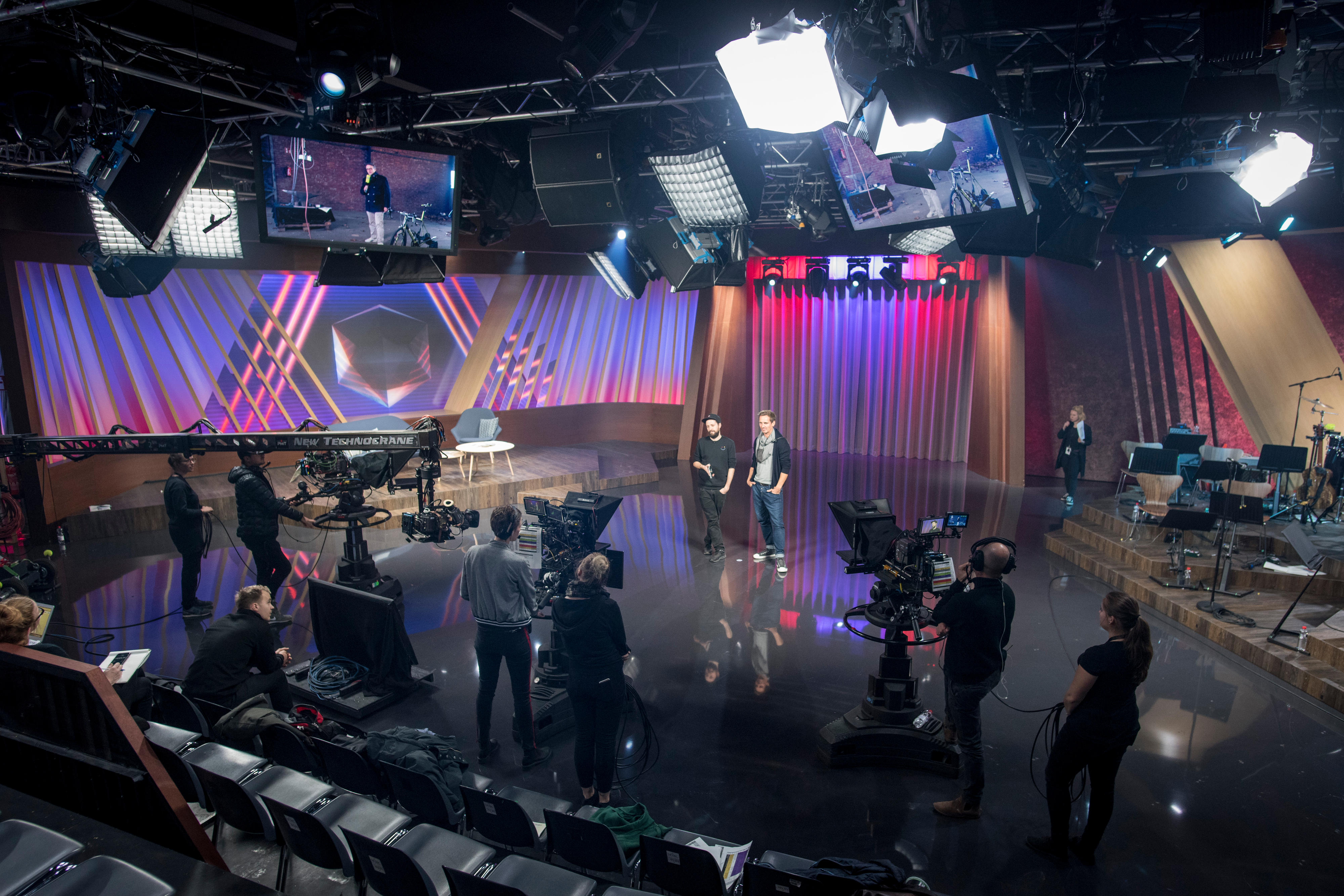 It includes a stand-up section, sit down interviews, and video inserts. There’s also music (the Rundfunk-Tanzorchestra Ehrenfeld performing Britney Spears’ classic “Toxic” was one highlight), a large studio audience, performers emerging from unexpected corners, and even games of hide-and-seek.