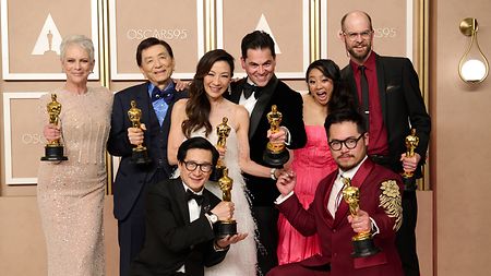 Oscar winners for “Everything Everywhere All at Once” backstage