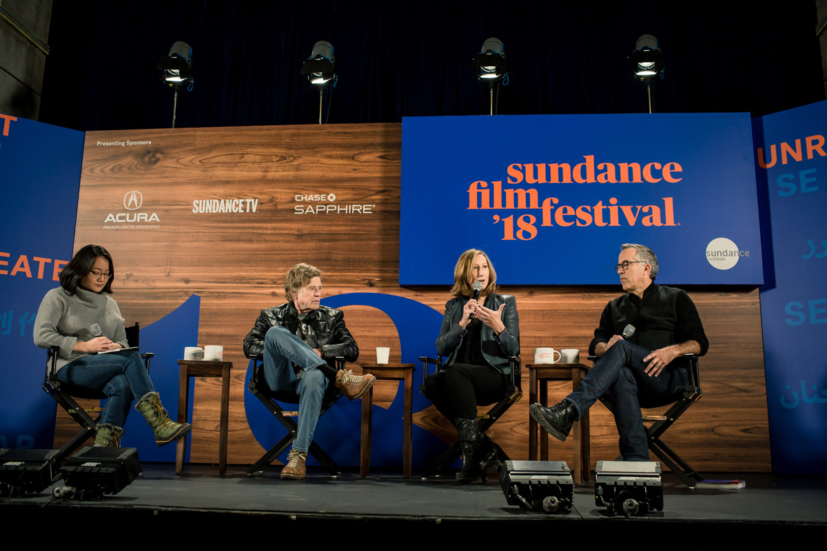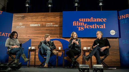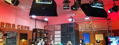 The Filmmaker's Lodge served as a backdrop for several panel discussions each day such as "The Future of Indie TV" and "Cinema Café." Holshevnikoff was tasked with creating a pleasing style for audiences in the studio which also needed to translate on camera for Sundance's streaming channel. The lighting system needed to be adaptable for different panel configurations and minimal changeover time between sessions. Panelists included Steven Soderbergh, Maggie Gyllenhaal, producer Stephanie Allain and more.