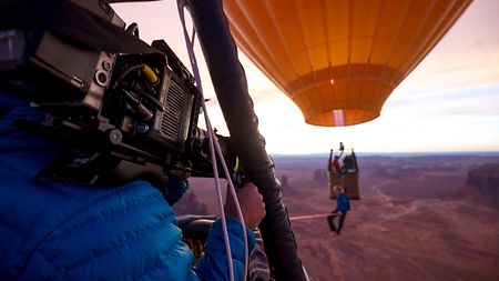 High above sacred Navajo land in Monument Valley U.S.A., suspended between two patriotic hot air balloons, a group of German slacklining filmmakers was able to pull off a stunning and symbolic feat. This balancing act was commissioned by the German Embassy and chosen to be one of six launch events commemorating the opening of the current Year of German-American Friendship or Deutschlandjahr 2018/19: a year-long celebration showcasing more than 1,000 events from more than 200 partners in all 50 United States. Under the motto “Wunderbar Together,” the Deutschlandjahr 2018/19 is a comprehensive and collaborative initiative funded by the German Federal Foreign Office, implemented by the Goethe-Institut, and supported by the Federation of German Industries (BDI).