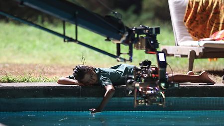 ALEXA Mini LF on set for a scene at the swimming pool with protagonist Walter