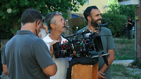 DP Ivan Casalgrandi (middle), director Davide Gentile (right), and the ALEXA Mini LF on set