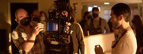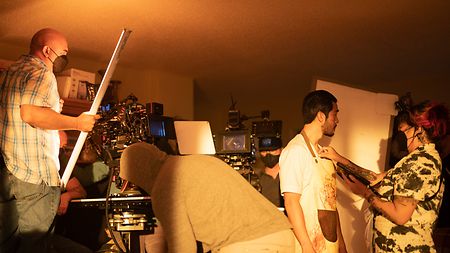 DP C. Kim Miles setting up an interior shot with the Mini LF