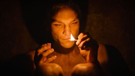 Quelle que soit la période, je suis parti du principe que la lumière venait d'en haut, avec quelque chose d'assez dur qui marque les visages. Le genre de lumière que l'on essaie d'éviter habituellement au cinéma. De jour, j'avais des entrants de lumière en SkyPanel par la fenêtre de la cellule que partagent Hans et Viktor. À l'intérieur, j'avais installé au plafond une carcasse de Kinoflo tout en longueur dont j'ai replié les bords pour éviter d'éclairer les murs et concentrer la lumière sur les corps. Dedans, j'avais mis un Astera sur batterie pour me débarrasser le plus possible des câbles. Cela permettait de laisser les personnages libres de se déplacer dans cette cellule de 7 m2. Quand Hans est envoyé nu au cachot, le réalisateur voulait que le personnage soit entièrement dans le noir et que la seule lumière soit celle de la trappe ouverte par les gardiens, avec un effet d'éblouissement ponctuel quand elle s'ouvre. Au tournage, j'avais quand même laissé un peu de lumière pour que l'on devine le corps, mais Sebastian n'a pas hésité à opter pour le noir total à l'étalonnage.