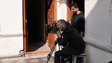 Le directeur de la photographie Joe Saade (à gauche) sur le tournage de « Joyland », lauréat du Prix du Jury dans la section « Un certain regard ».