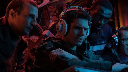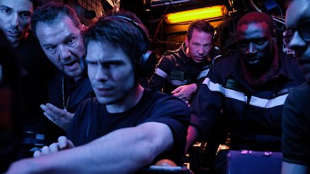 Il y a eu un gros travail en amont avec le chef décorateur Benoît Barouh. Les scènes ont été tournées en studio avec des murs amovibles mais nous nous étions fixés une contrainte forte avec le réalisateur : le plan de l’image de la caméra devait toujours rester dans le sous-marin, ne jamais être à l’extérieur. Là, j’ai fait un choix un peu contre-intuitif, dont je suis assez fier. Je me suis rappelé qu’à l’origine, la Louma avait été mise au point pour tourner dans un sous-marin. J’ai donc monté l’ALEXA Mini sur une petite grue Aerocrane avec une MicroHead. Cette solution nous a donné une très grande flexibilité en courte focale sur le plateau. Elle nous permettait de chercher le plan sans perdre de temps en installation, de rester ouvert à la meilleure idée tout le temps. Cela libérait aussi de la place pour la chorégraphie, le mouvement des comédiens.