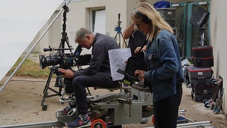 A gauche la réalisatrice Géraldine Danon et au centre le directeur photo Pierre Milon sur le tournage de « Flo »