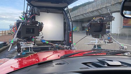 車内での撮影が多いので、撮影チームは小さく安定したカメラを選ぶ必要があった。「サーブは本当に小さいのですが、ALEXA Miniは車内で2台使用できるほど柔軟性がありました。 しかも、ファンのノイズがまったくありませんでした」