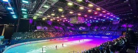 조명 디자이너 안톤 베버가 이끄는 조명팀은 생중계되는 대규모 스포츠 경기를 위한 조명 설비를 계획하면서 몇 가지 창의적인 도전에 직면했습니다. 몽펠리에의 수드 드 프랑스 아레나 (Sud de France Arena)는 60m x 30m(196ft x 98ft)의 아이스링크와 선수 및 코치를 위한 공간, 경기장 앞뒤의 심사위원석으로 이루어져 있었습니다. 5천 명이 넘는 관중과 TV 생중계 카메라 앞에 감동적인 라이브쇼를 선보이기 위해서는 총 70m x 35m(230ft x 115ft)에 달하는 거대한 공간을 고르게 밝혀야 했습니다. 베버의 조명팀은 88대의ARRI SkyPanel S360-C 조명이 필요하다고 판단했고 ARRI의 지원을 받을 수 있었습니다. “선수나 관중 그 누구도 조명 때문에 시야에 손상을 입는 일이 없도록 하는 것이 매우 중요했습니다. 그리고 바로 그런 이유로 ARRI를 선택하게 되었습니다. SkyPanel은 몇 분간 직시해도 문제가 없으니까요.” 베버가 설명합니다.